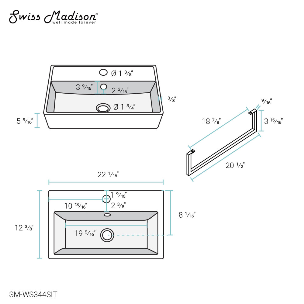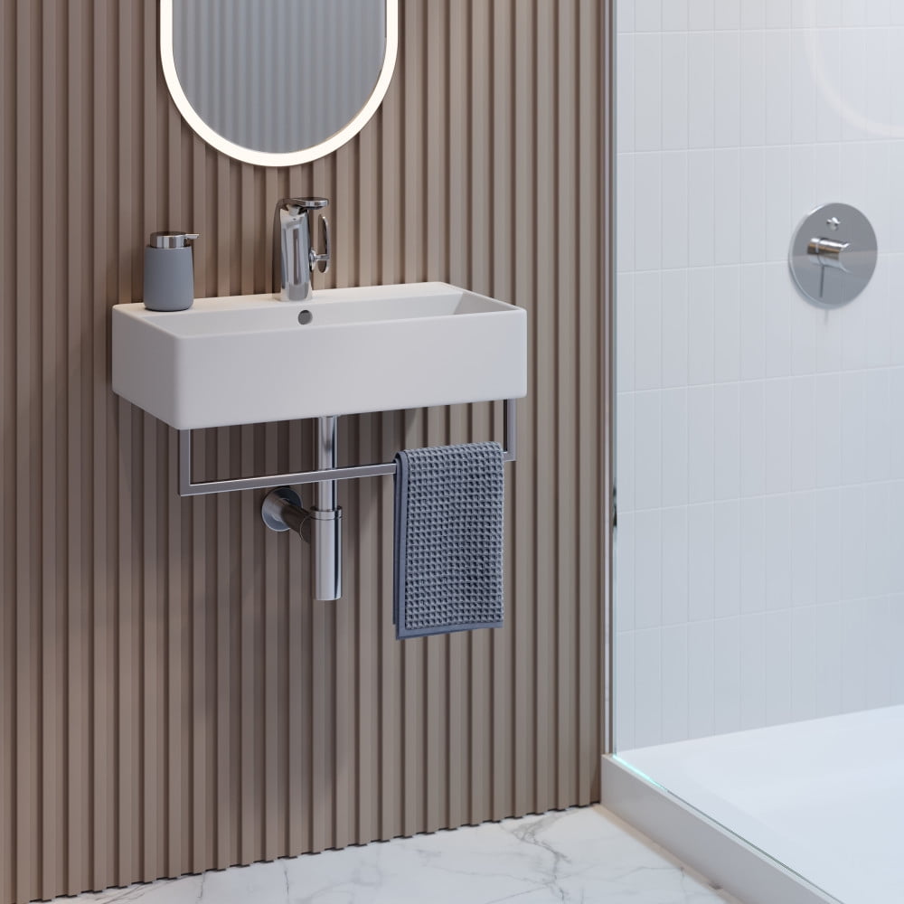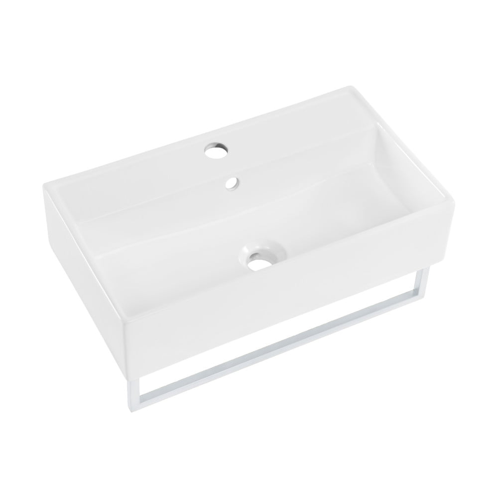 Claire 22″ Wall-Mount Bathroom Sink with Silver Towel Bar