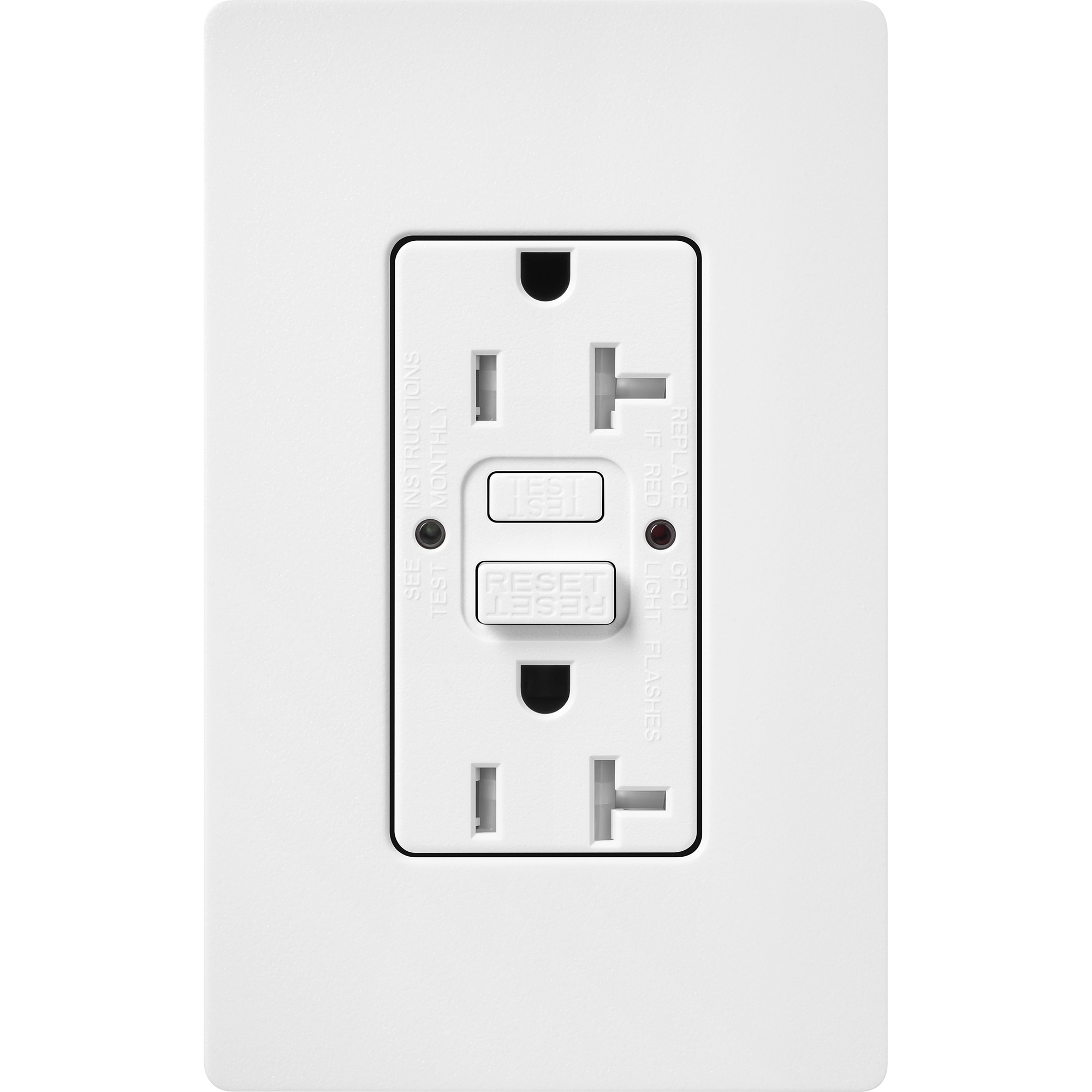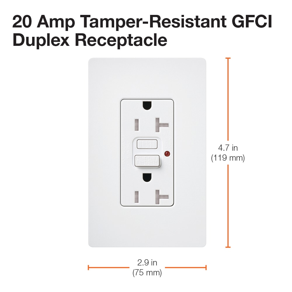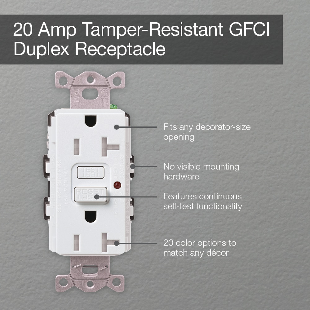Coordinate your lighting controls and switches with receptacles to complement your decor. This receptacle has a test/reset button but also automatically checks every 30 seconds to see if it everything is functioning properly. There is an LED indicator that will turn red if the unit is no longer working as it should. There is also a tamper resistant shutter mechanism to prevent someone from sticking something into the receptacle and causing injury. Installing a receptacle is easy and can be done in as little as 15 minutes. Coordinating wall plate not included.