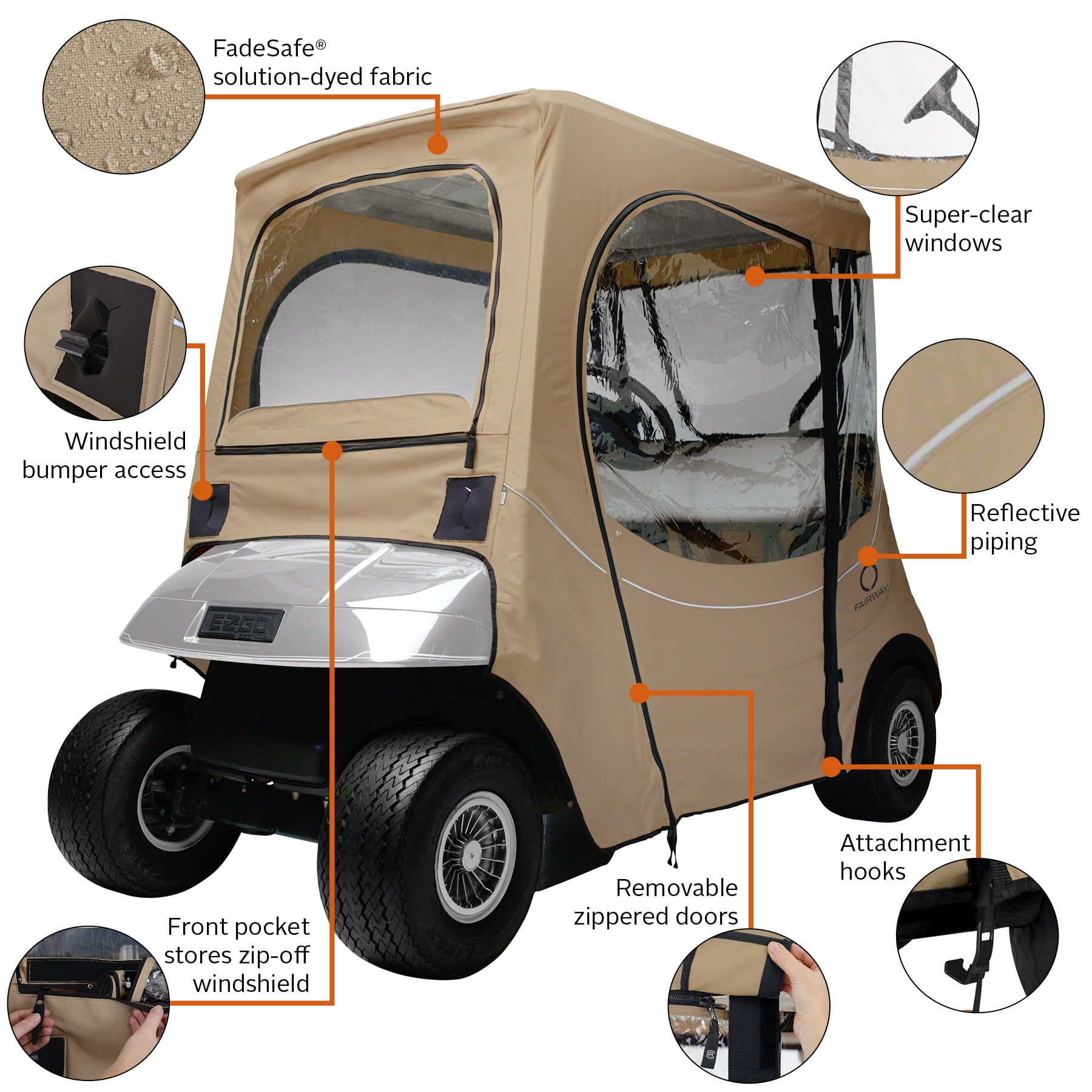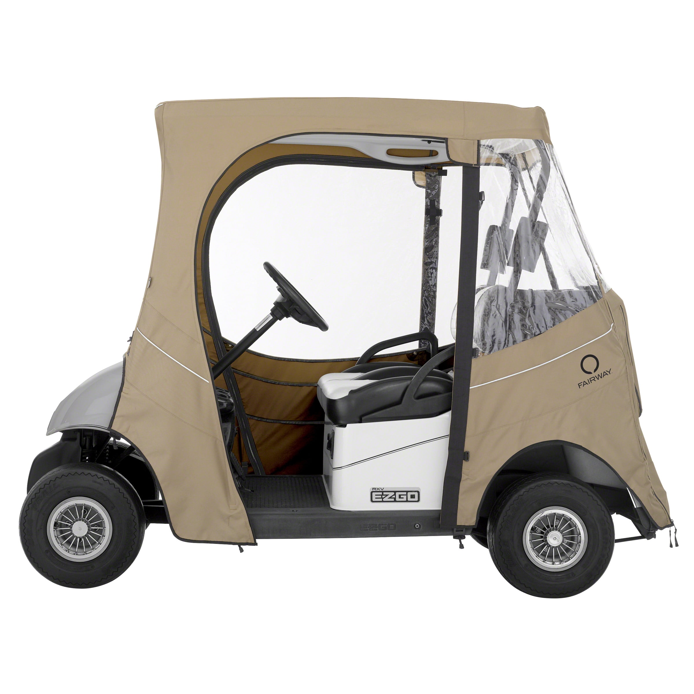 Classic Accessories Fairway Short Roof 2-Person FadeSafe™ Golf Cart Cover – E-Z-Go® Golf Cart Enclosure, 59”L Roofs, Light Khaki
