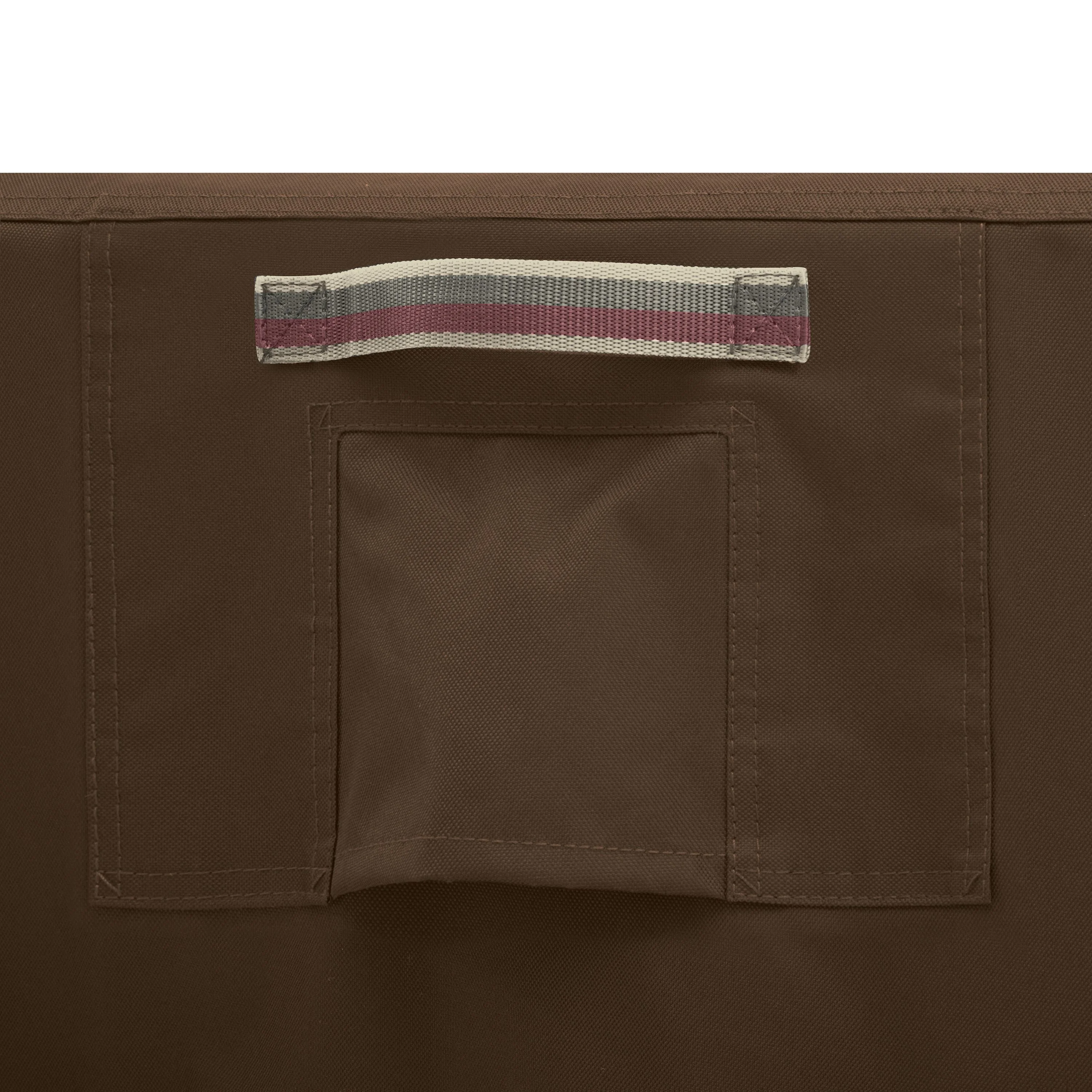 Two-year limited warranty Our RainProof fabric combines style and durability with taped seam construction to keep water out so that you’re always ready to entertain Customized click-close buckles and adjustable designer webbing provide exceptional security in windy conditions Critical taped seams help keep water out and your furniture protected Vent hoods are seam taped to keep water out, providing maximum ventilation and minimum condensation Custom designer handles provide ease and comfort when installing and removing covers Cord lock closures allow easy access to adjustment points at the hem resulting in a custom-like fit Not designed to entirely cover the wheels or legs
