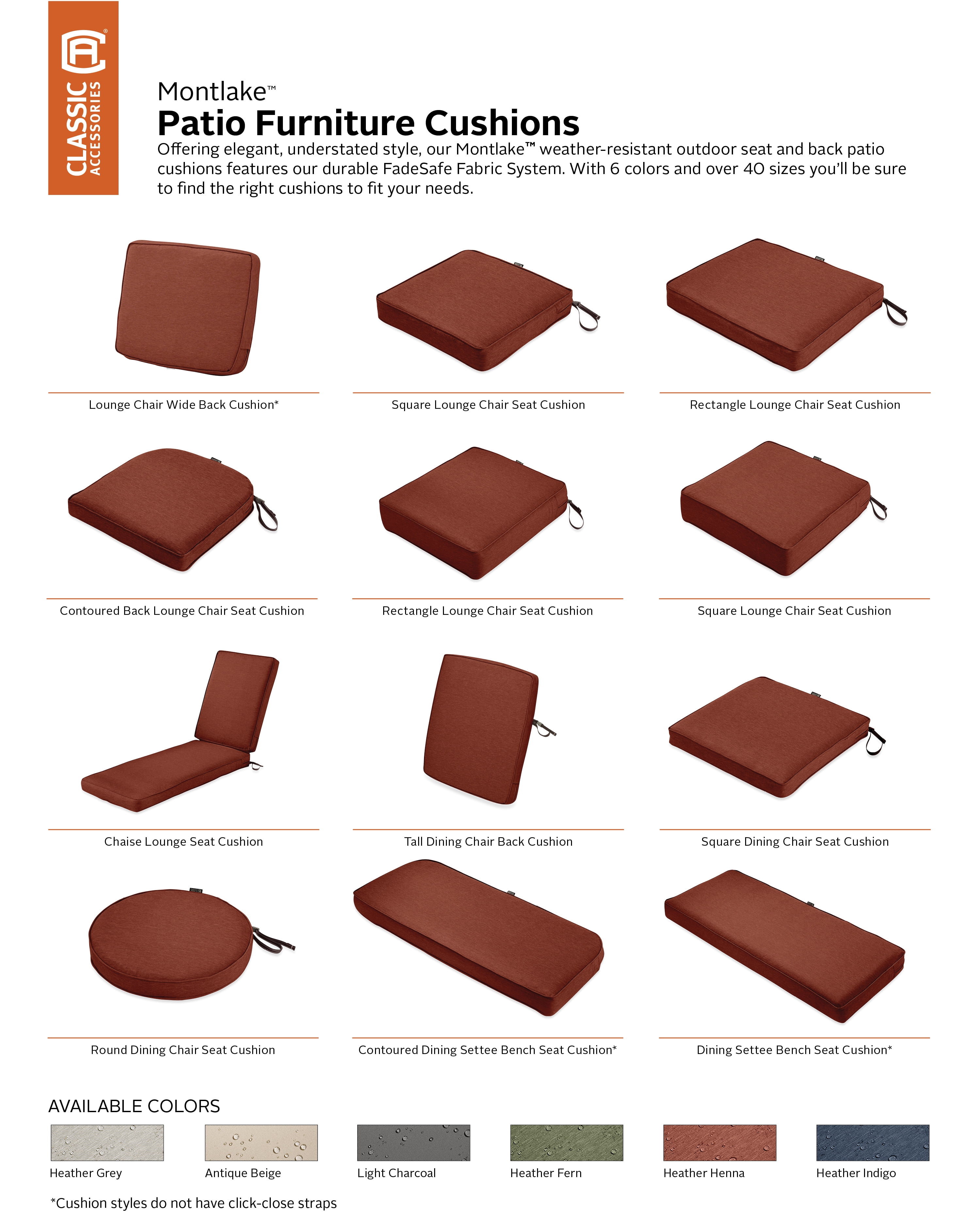 ENDLESS RELAXATION: cushion is overstuffed with resilient foam for lasting comfort DURABLE FABRICS: Montlake FadeSafe fabrics are engineered to resist fading and moisture QUALITY CRAFTSMANSHIP: Bound interior seams keep the cushions integrity strong DIMENSIONS: Fits 42-50 Dia, 5 thick HASSLE-FREE WARRANTY: 1 year warranty gives you extra peace of mind