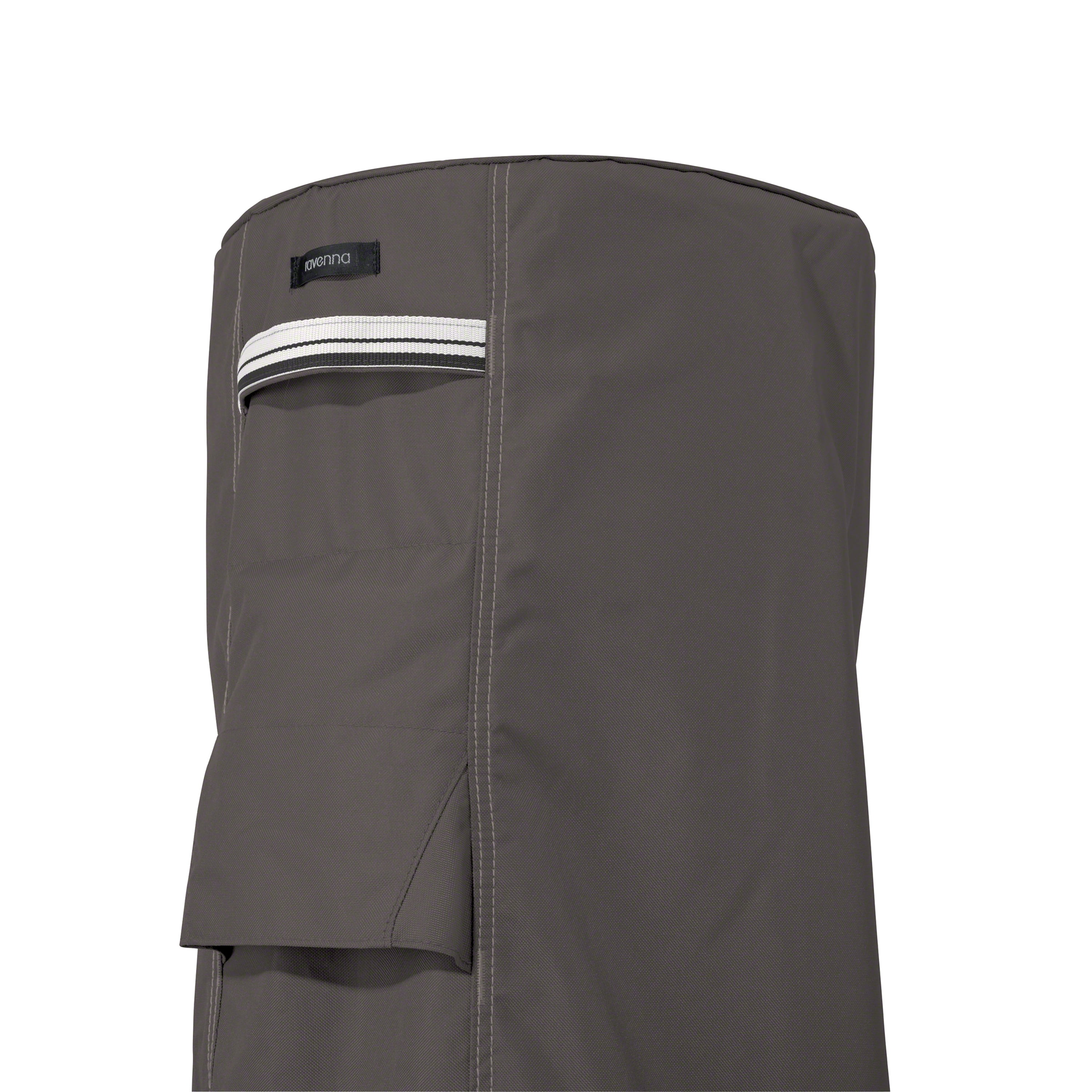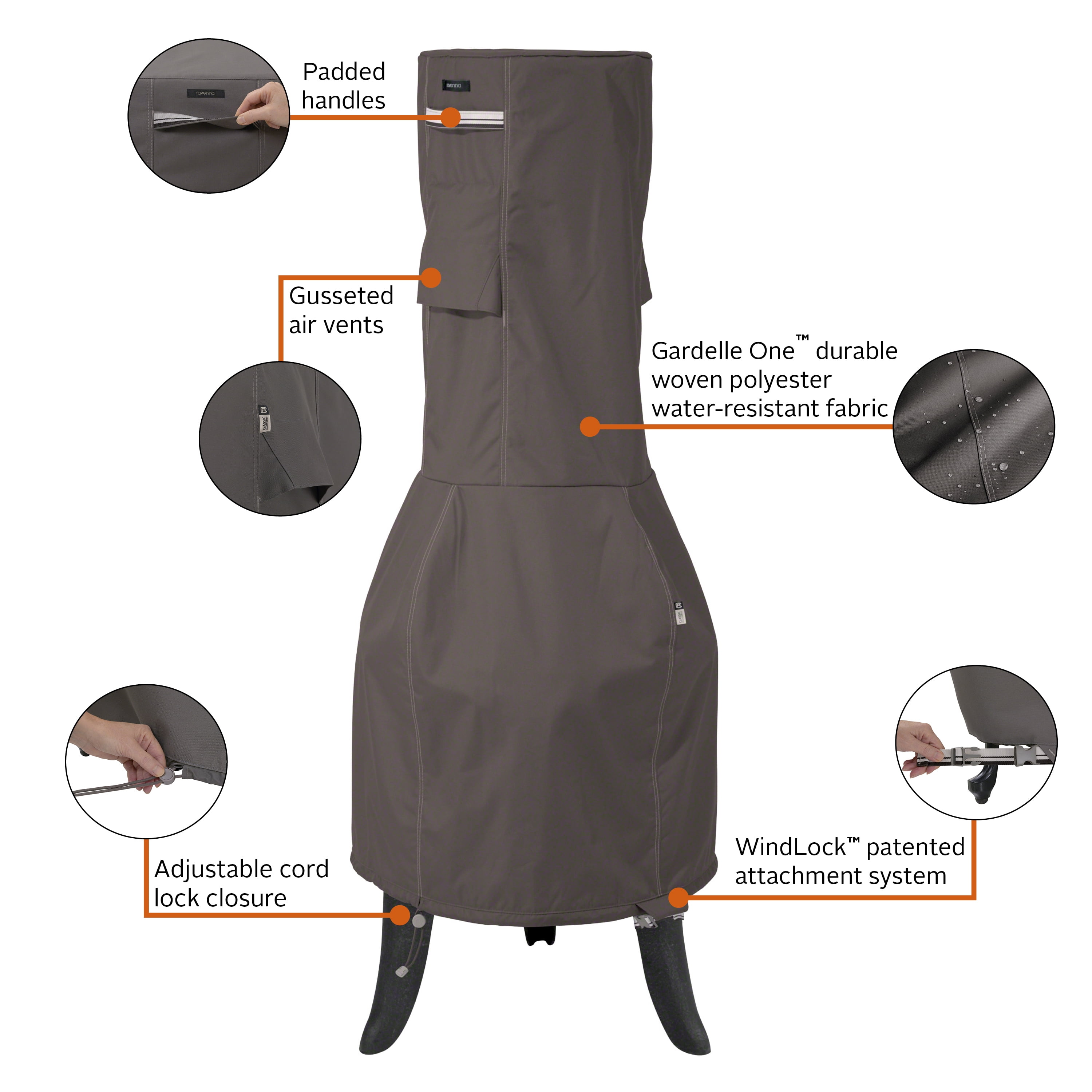 PREMIUM OUTDOOR COVER: Fits chimineas 22″DIA x 52.75″H OUTDOOR FURNITURE COVER with WARRANTY: 2-year Limited warranty HEAVY DUTY AND WATER RESISTANT: Gardelle One is a durable woven polyester fabric with an added UV-stabilized coating and a water-resistant laminated backing CUSTOM FIT OUTDOOR PATIO COVER: Water-resistant backing keeps your chiminea dry while elastic hem cords move easily through a special channel and custom-colored buckles attach to legs for a snug fit DURABLE COVER WITH ADVANCED FEATURES: Reinforced padded handles make removal easy while air vents keep weather out providing maximum ventilation and minimum condensation RAVENNA OUTDOOR PATIO SET COVERS: Protect your entire patio furniture collection with premium Ravenna covers Not designed to entirely cover the wheels or legs Image color may vary slightly from product color due to variances in screens/displays. Dark Taupe is a neutral, warm grey that appears brown in certain lighting situations