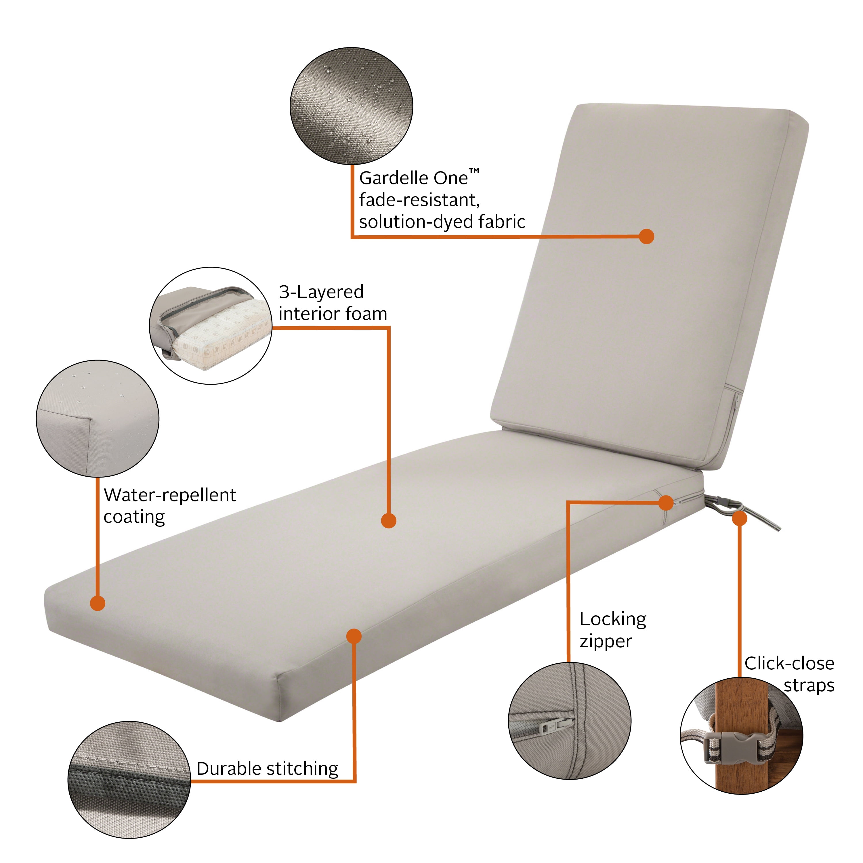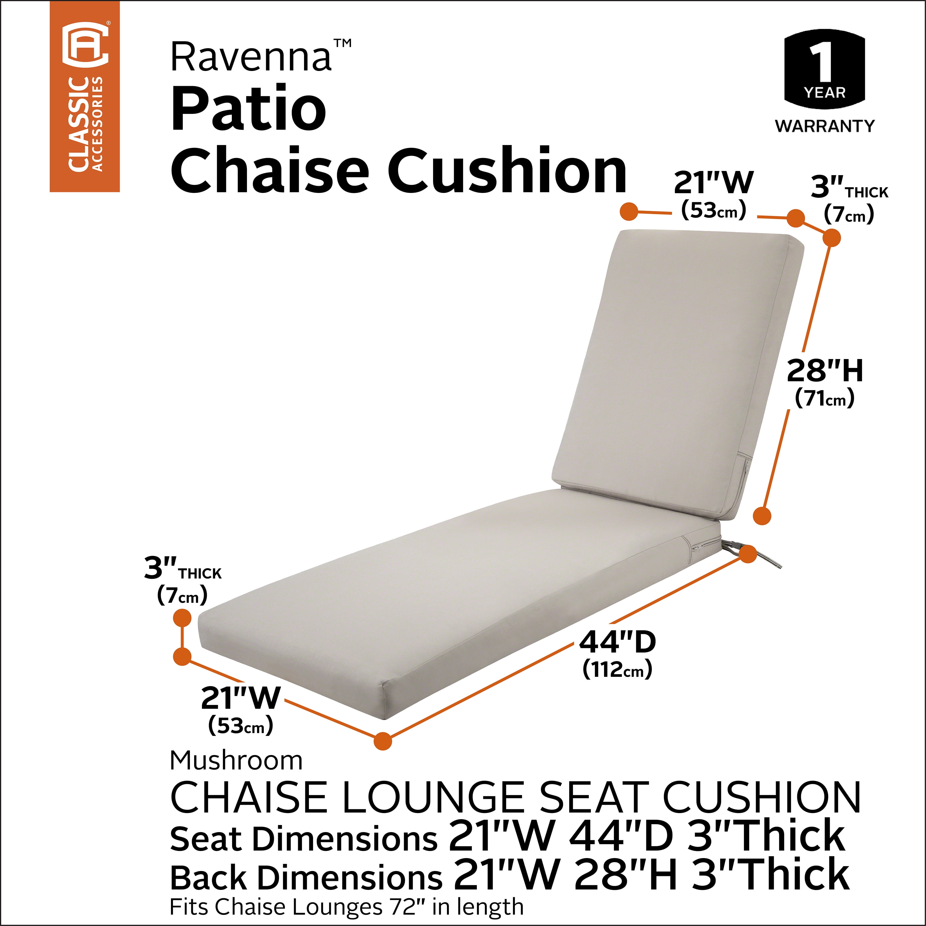 Classic Accessories Ravenna® Patio Chaise Lounge Cushion Slip Cover & Foam – Durable Outdoor Cushion, Mushroom, 72″L x 21″W x 3″Thick
