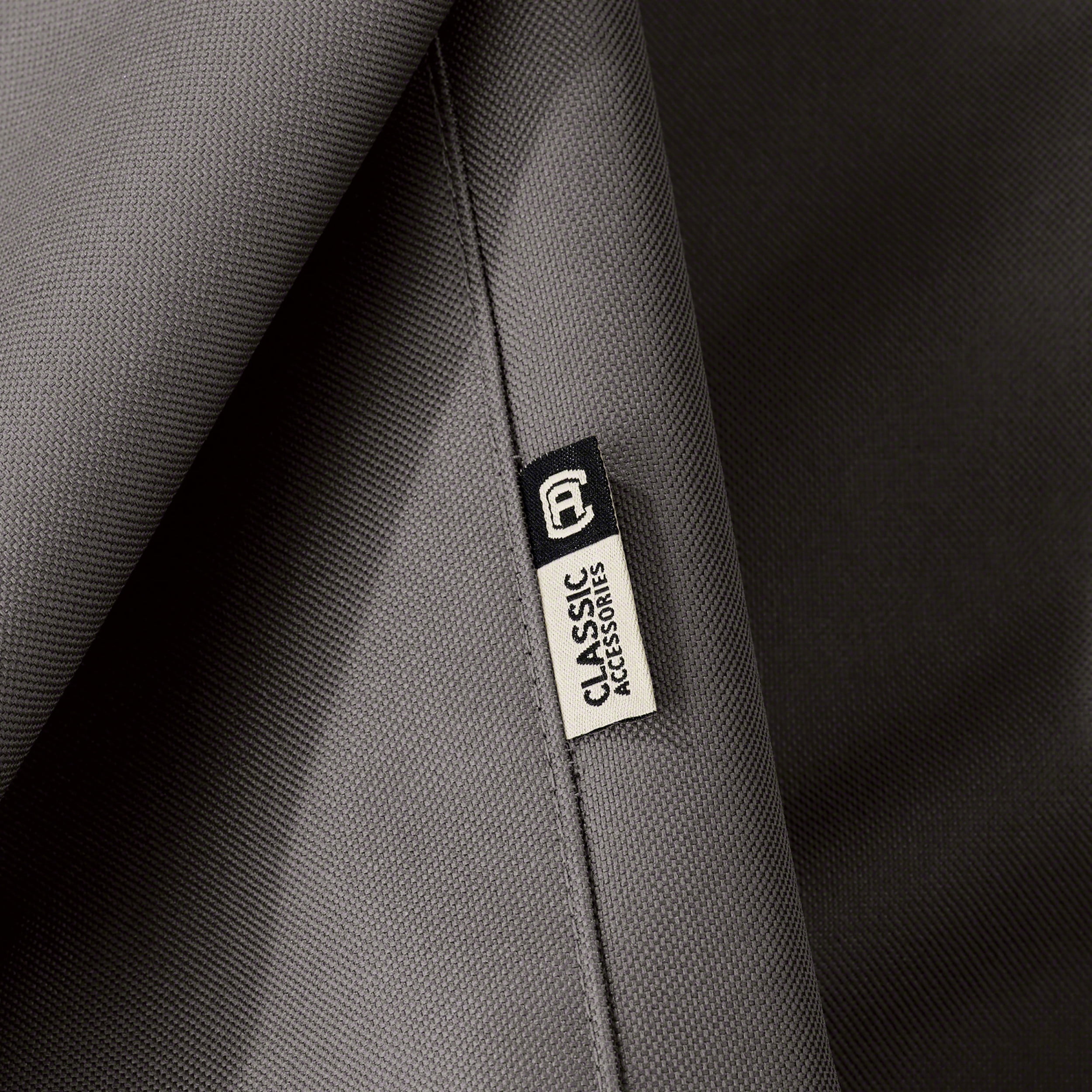 Two-year limited warranty Gardelle One is a durable woven polyester fabric with a water-resistant backing and is designed to help withstand the sun; 6P free and EU REACH compliant Our patented WindLock™ attachment system includes click-close buckles and an adjustable cord lock closure for extra security Reinforced padded handles make removal easy while air vents help to maximize ventilation and minimize condensation Not designed to entirely cover the wheels or legs. Image color may vary slightly from product color due to variances in screens/displays; Dark Taupe is a neutral, warm grey that appears brown in certain lighting situations *Please refer to your furniture’s care instructions as some finishes, sealants or coatings could react to PVC-backed covers. To reduce this possibility, the use of a Duck Dome (sold separately) is recommended to elevate the cover. Do not use with furniture made of concrete
