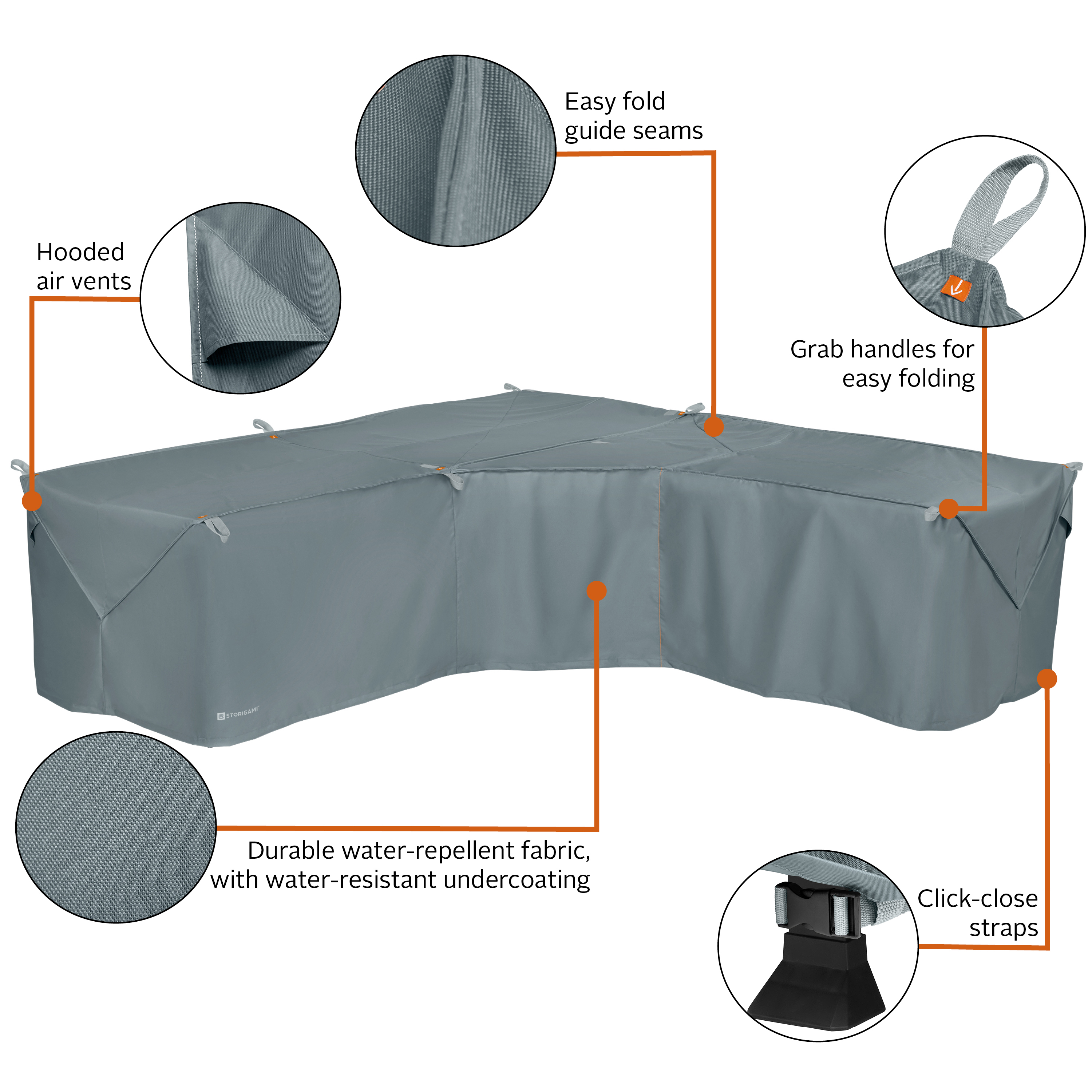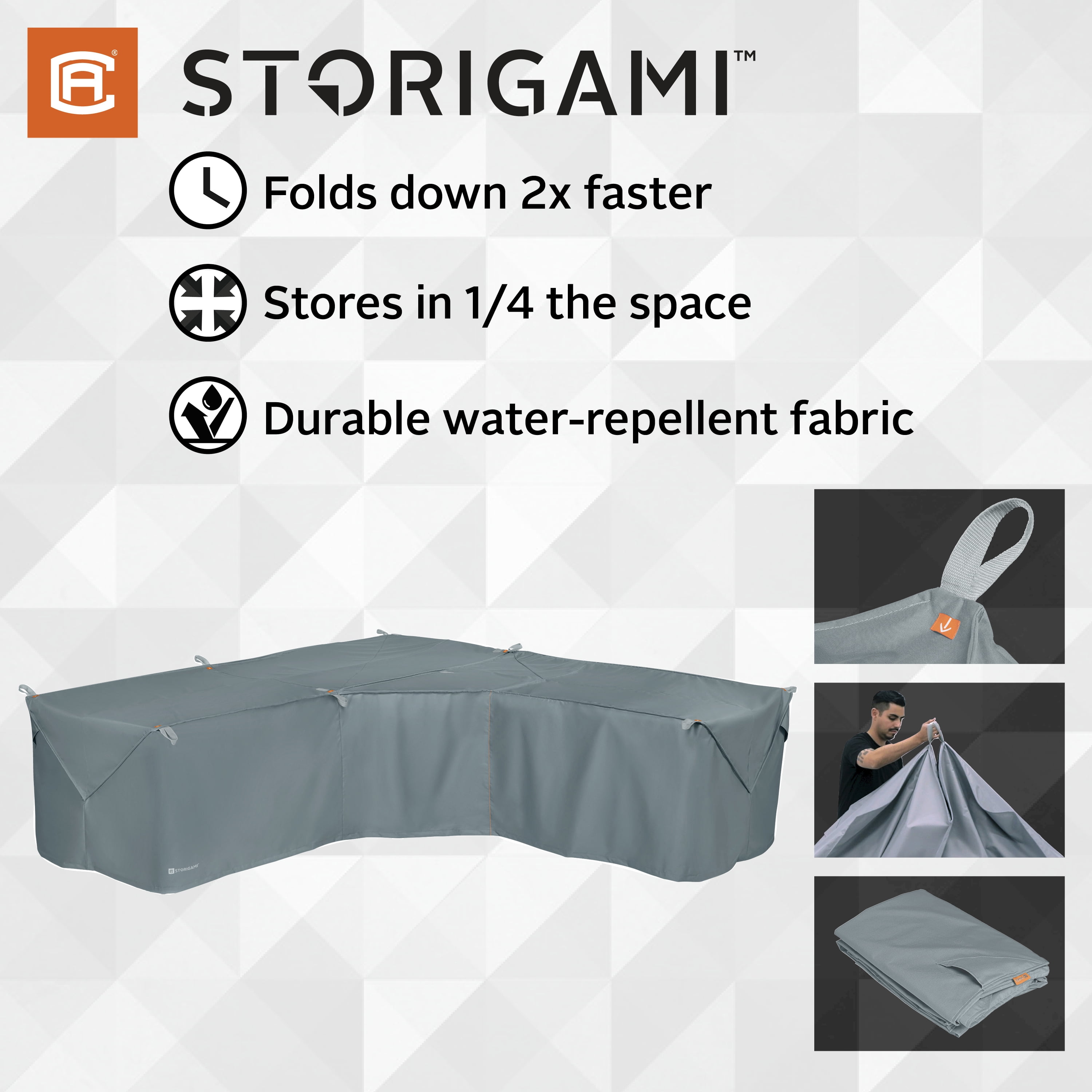 Classic Accessories Storigami Water-Resistant 100 Inch Easy Fold Patio V-Shaped Sectional Lounge Set Cover, Monument Grey