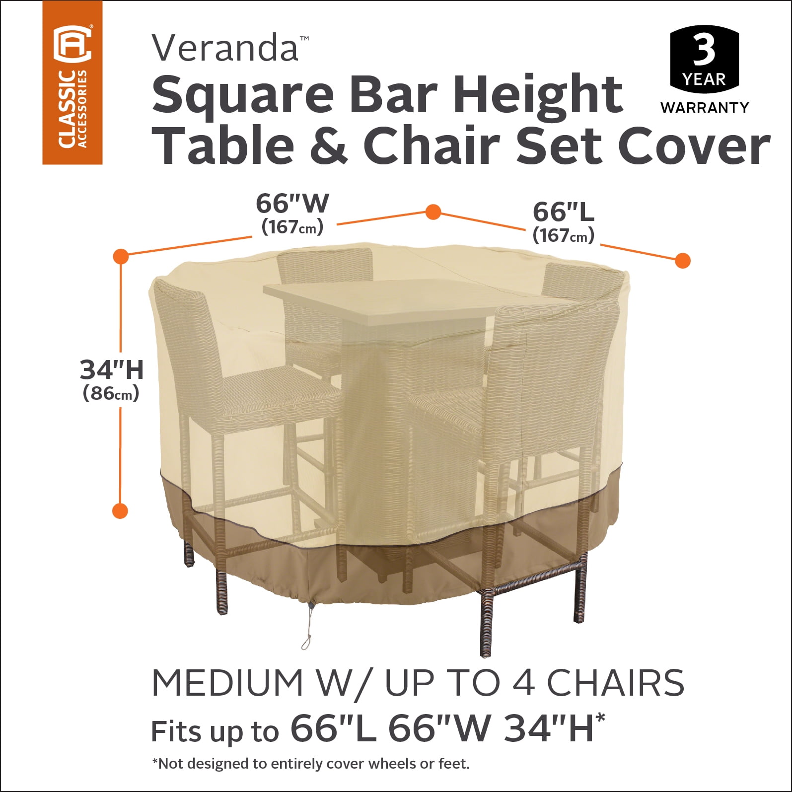 Classic Accessories Veranda™ Square Bar Table & Chair Set Cover – Durable and Water Resistant Outdoor Furniture Cover, Medium (55-906-031501-00)