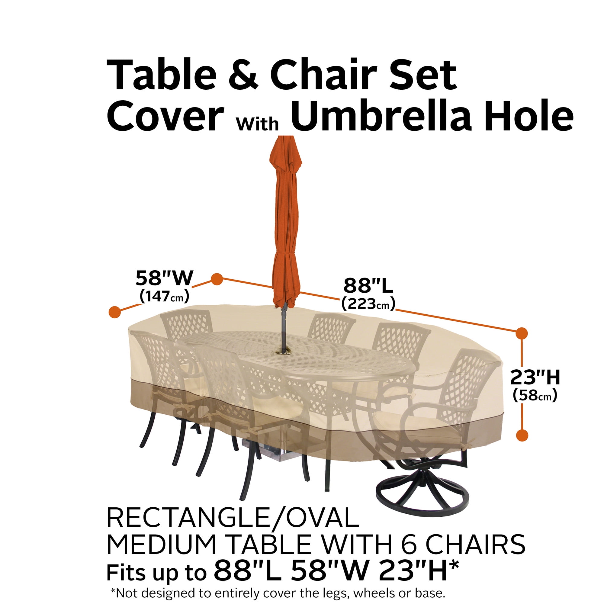Classic Accessories Veranda Water-Resistant 88 Inch Rectangular/Oval Patio Table & Chair Set Cover with Umbrella Hole