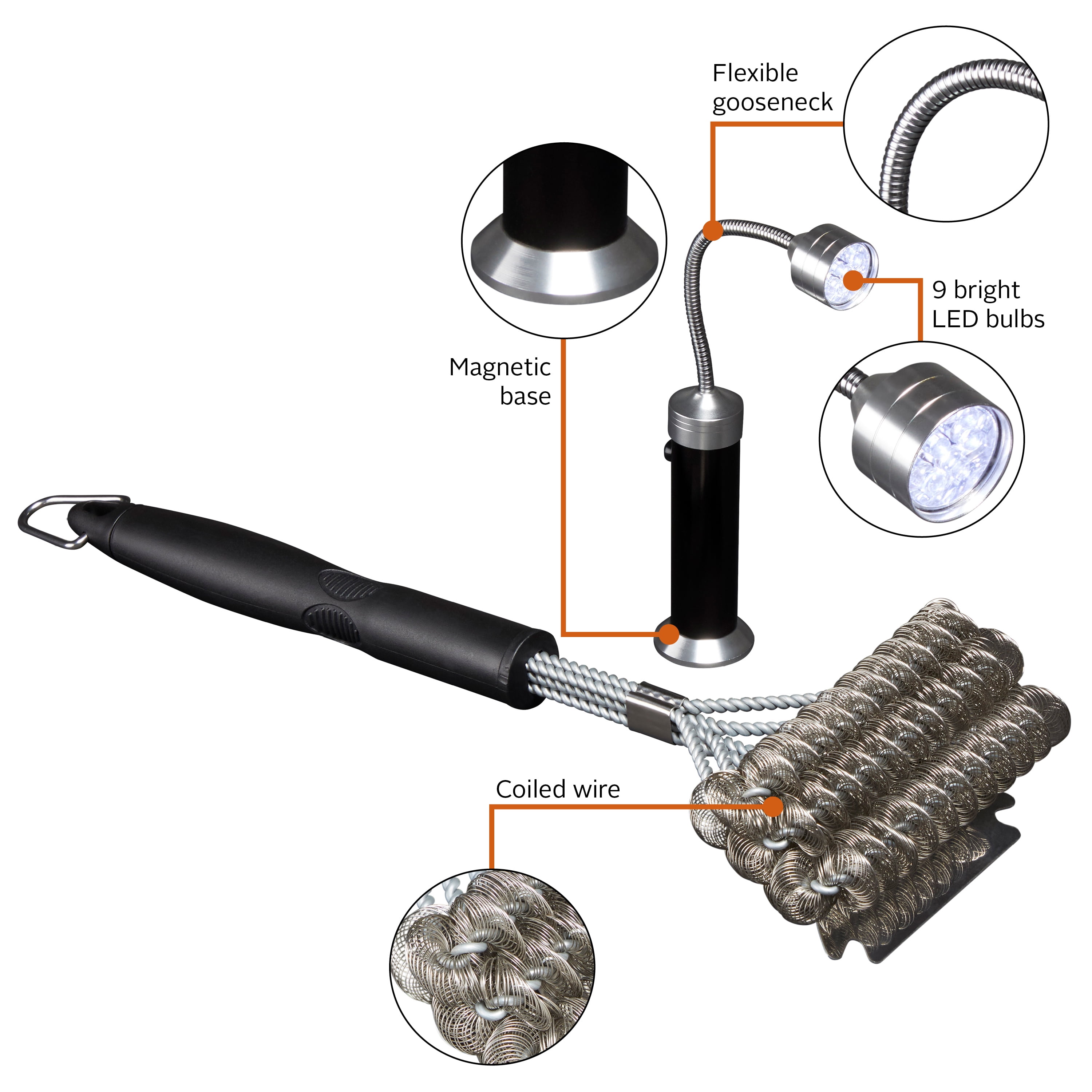 Classic Accessories Water-Resistant 64 Inch BBQ Grill Cover with Coiled Grill Brush & Magnetic LED Light