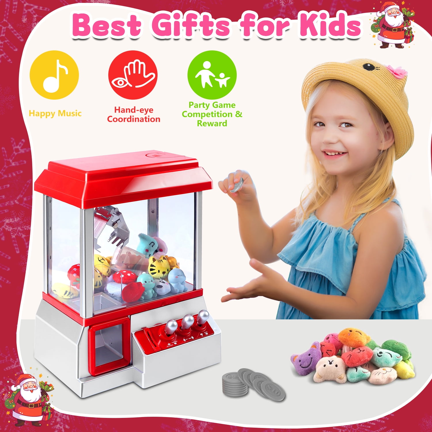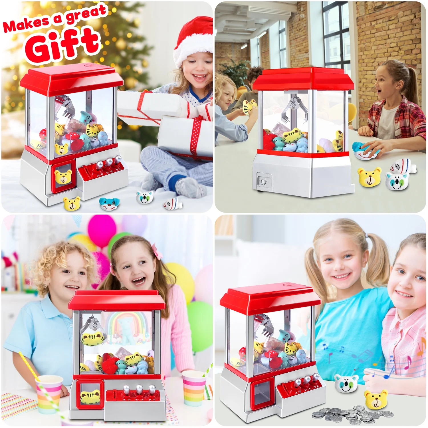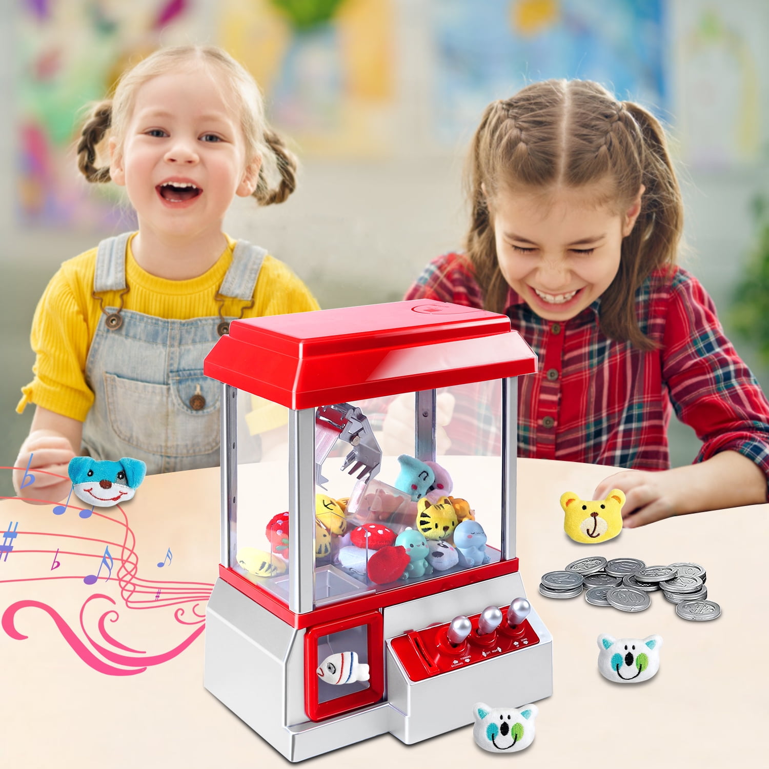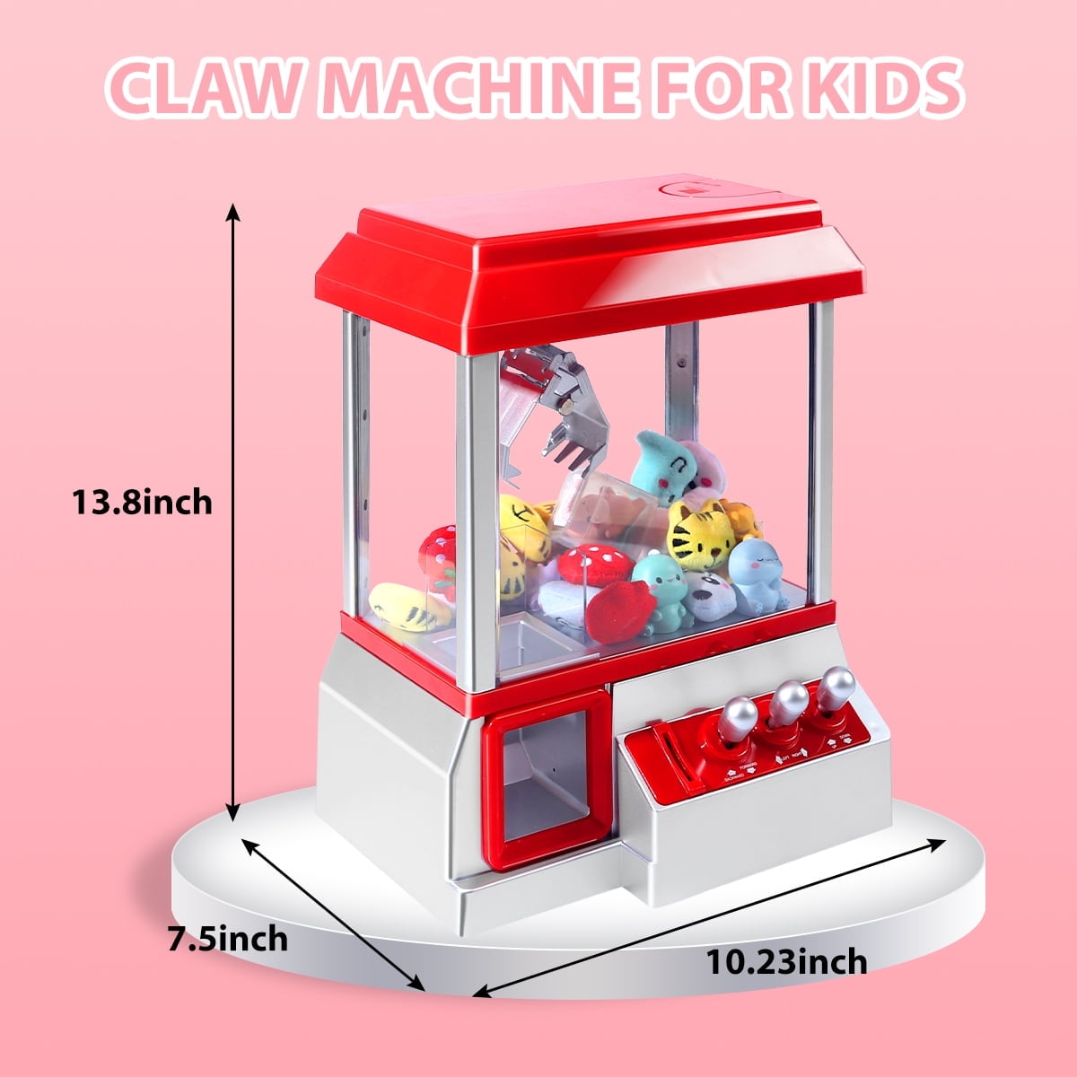 Ultra Durable Material: The durable construction make the dolls grabber can withstand frequent use and many playing sessions, making it a reliable addition to any child’s toys. Kids can enjoy hours of entertainment without worrying about damaging the mini vending machine or it breaking down. Challenge & Rewarding: Use the controls to move the grabbing mechanism back and forth, up and down to grab a winning prize. Just like the classic claw machine at the arcade, our product plays music while you are trying to grab your prize. It provides satisfaction and a sense of accomplishment, making it the best toy claw machine for kids. Simple To Use: Just insert a token or real coin into the slot to activate, then use the three control knobs to move the crane around. Opening at the top of the machine allows for refilling with more toys, candy, gum etc. Includes 24 tokens and 20 random plush animals. Developmental Toy: Repeated manoeuvering of the claw improves kids’ fine motor skills, hand-eye coordination, and concentration, helping to develop their core visual skills. Our claw machine toys encourage kids to solve problems and strategize to grab delicious candy. Perfect for Gatherings: Whether your making a party or simply spending time with the family, our claw grabber brings the arcade right into your home. It is fun for kids and for adults!