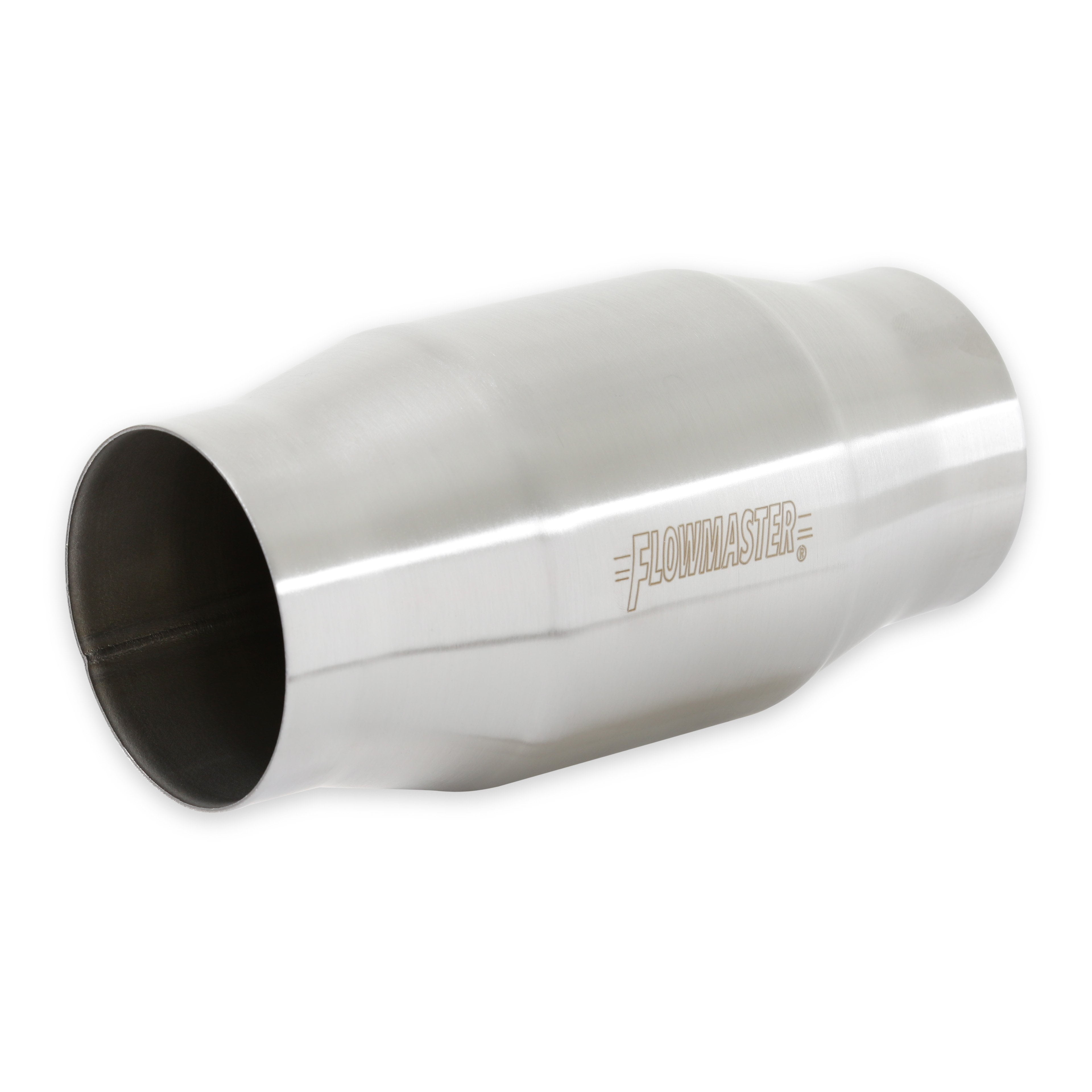 Universal 200 Series – 3.00 in. Inlet/Outlet; These high quality round catalytic converters are designed to work for a wide variety of universal applications. Features include a compact 4.00 in. diameter x 8.00 in. long spun outer casing for ease of fitment in tight spaces along with High Flow 200 Cell Metallic Substrate for severe-duty/high temperature applications. They feature a 3.00 in. inlet/outlet diameter connections and are intended for customized Pre-OBDII racing applications, and as a green solution for vintage hot rods or vehicles that did not originally come equipped with catalytic converters from the factory. These are Not intended to meet on-highway compliance programs and are Not Legal for Sale or for Use in California. Also, may Not be Legal in States that follow CARB regulations.;