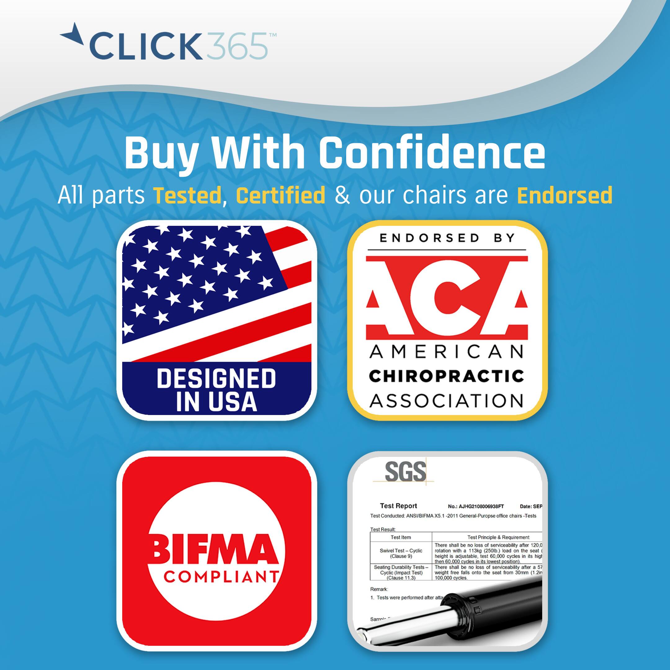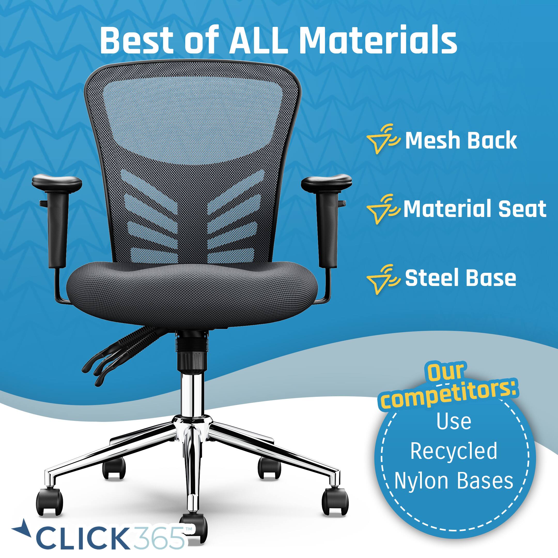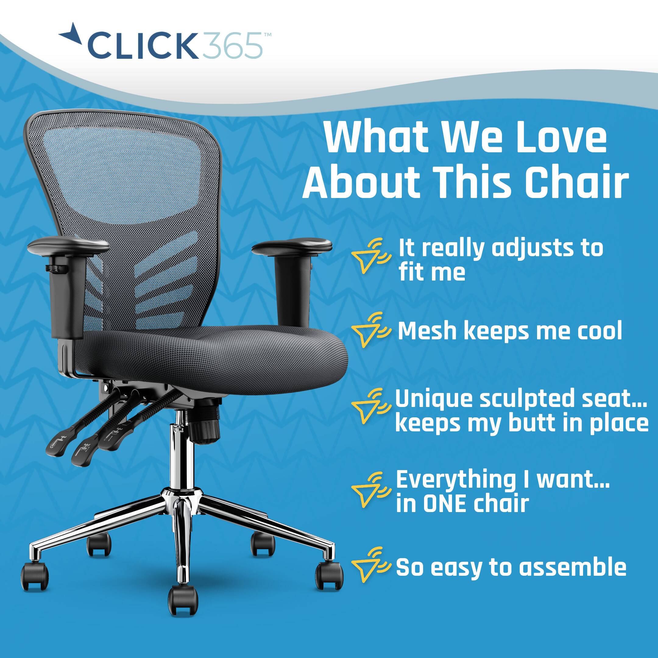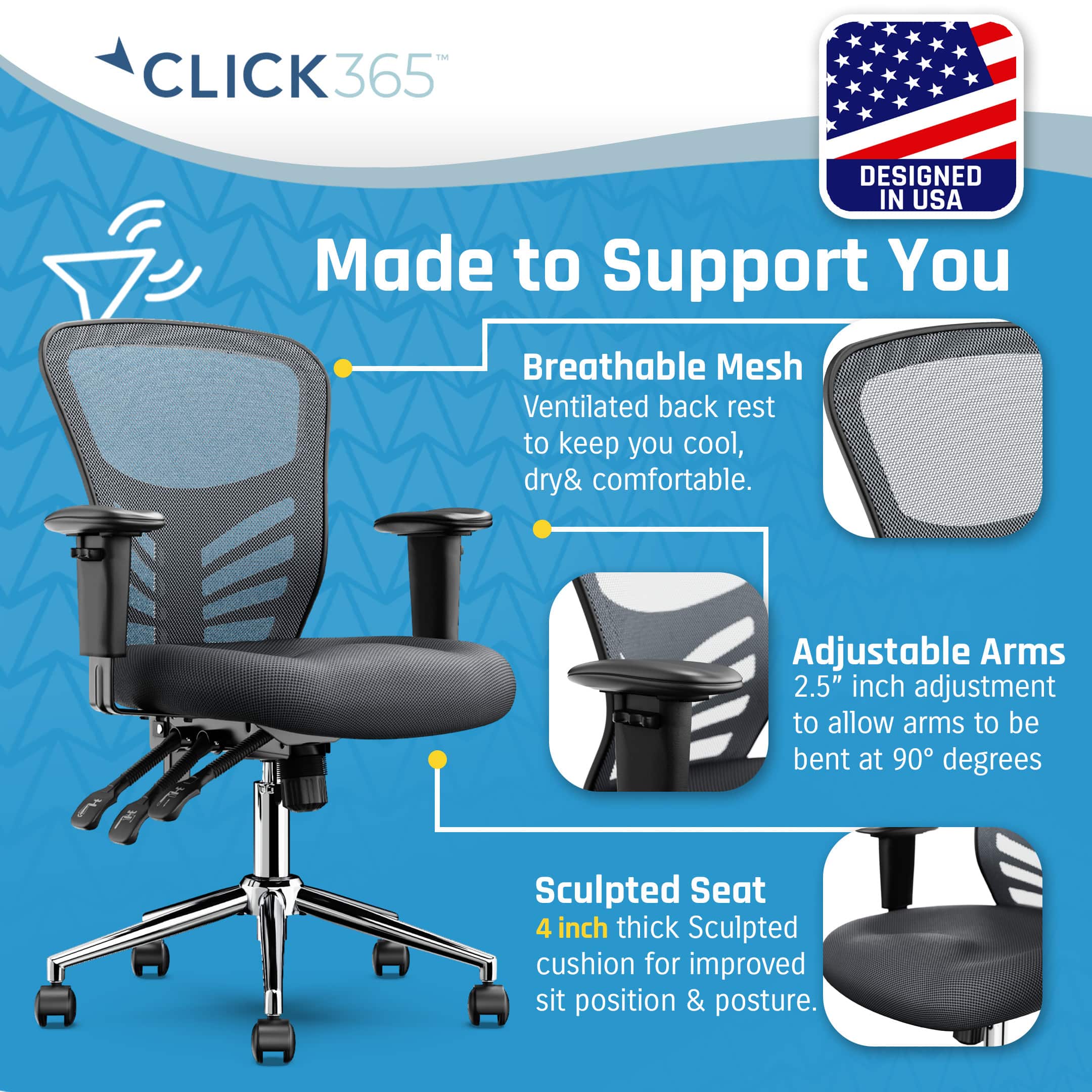 Designed in America, endorsed by American Chiropractic Association. Click365 Flow Mesh Office Chairs offer 3-paddle control, making it easy to find the right fit for you. Featuring generously padded seat cushion, reliable ergonomic built-in lumbar support, this chair provides the long-lasting comfort. The heavy-duty metal base is built to increase longevity and durability. It is perfect for everyday use at home, in office, as well as a great option for gamers.