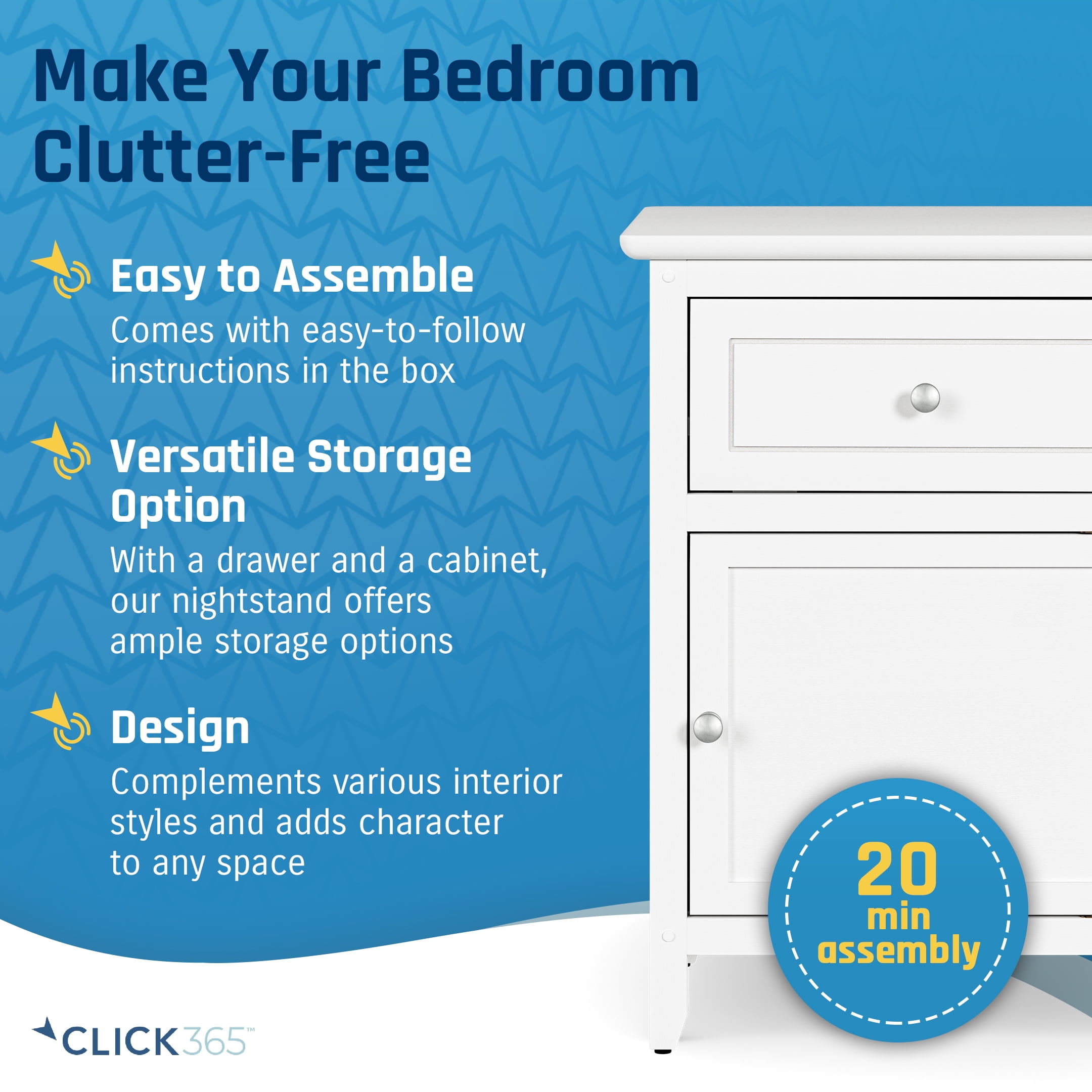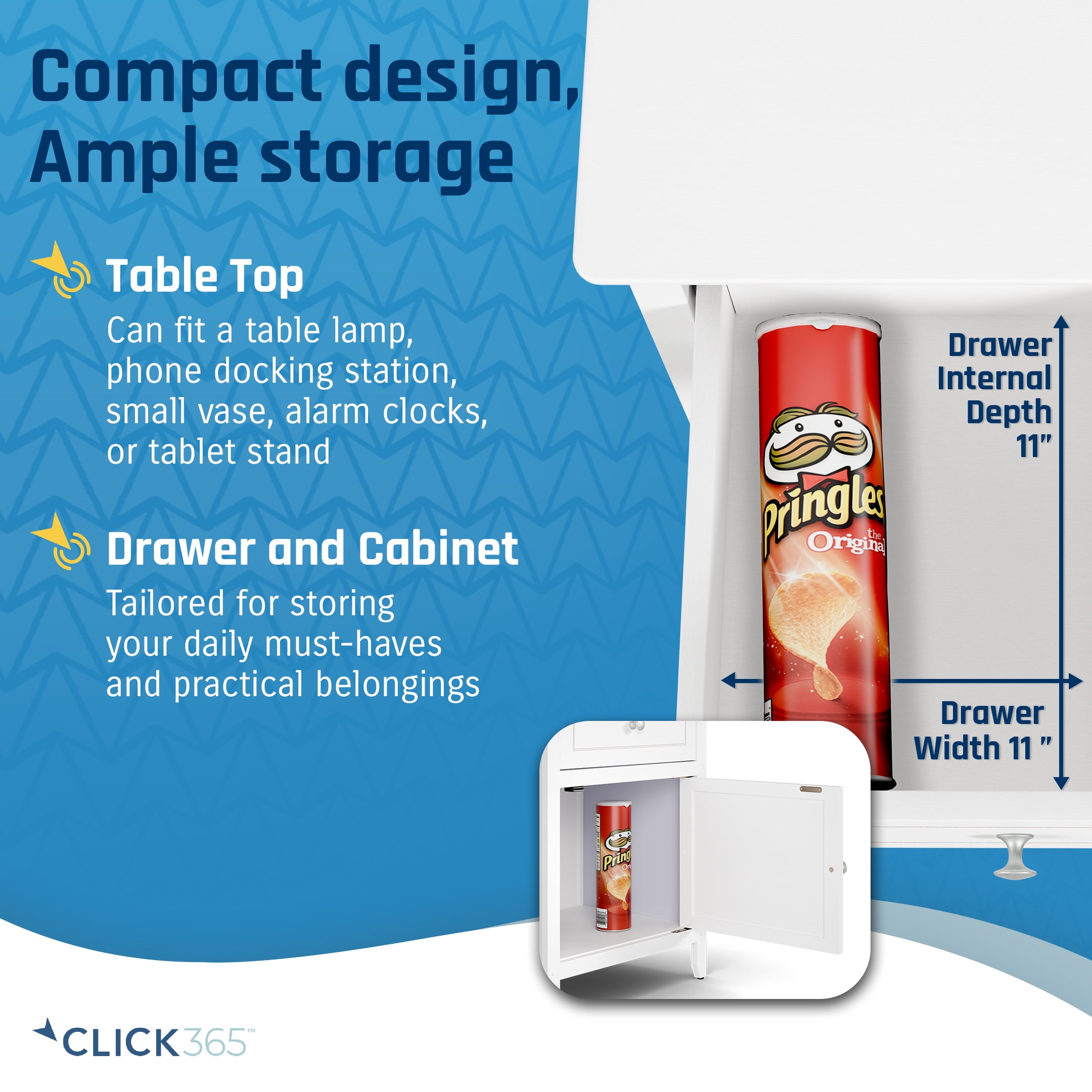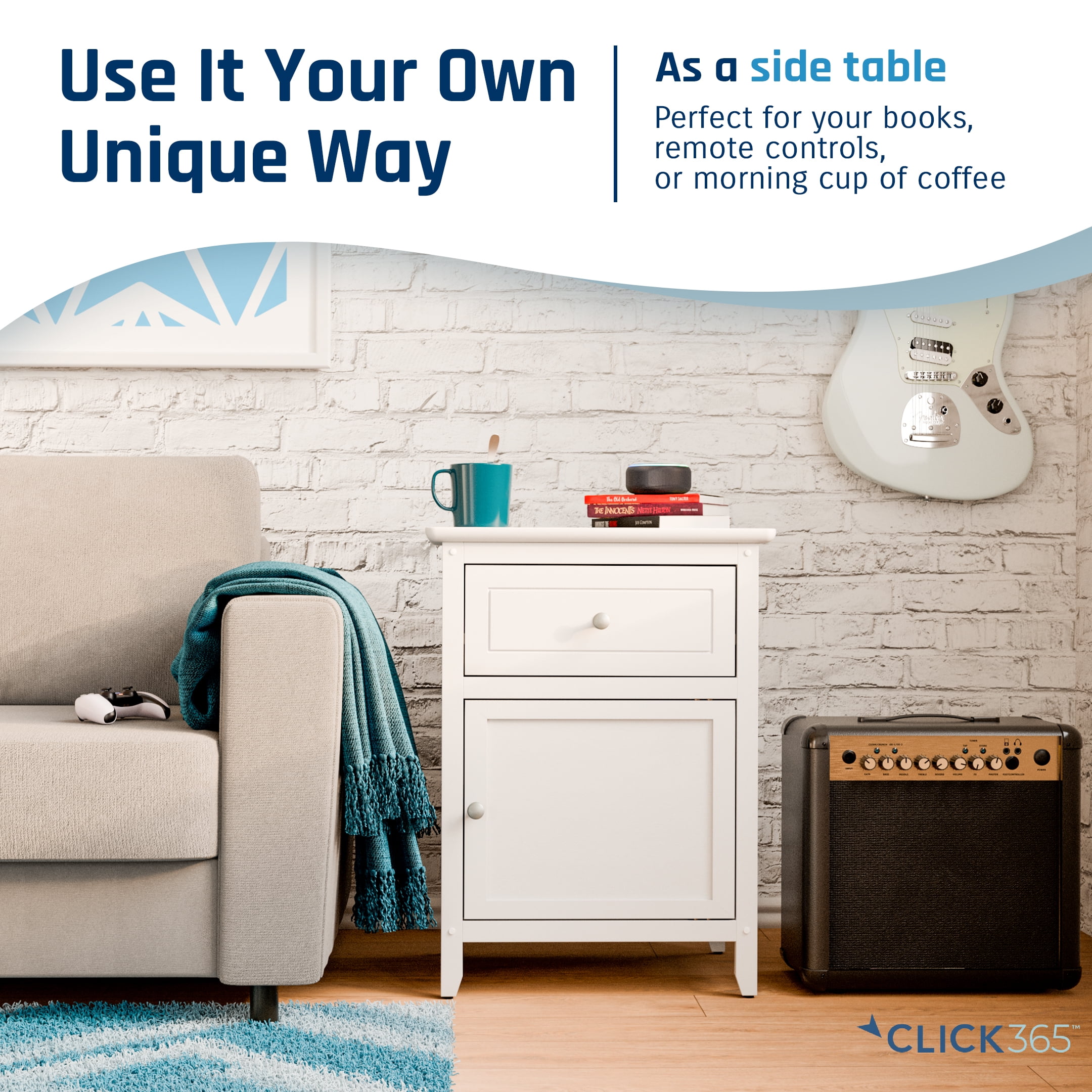 ClickDecor Alcott Side Table with Single Drawer and Storage Cabinet White