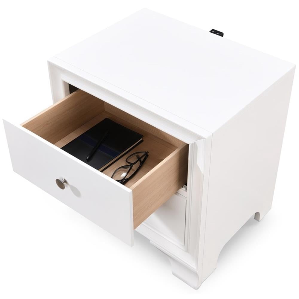 ClickDecor Edmond 2 Drawer Nightstand End Table with USB Charging Station, White