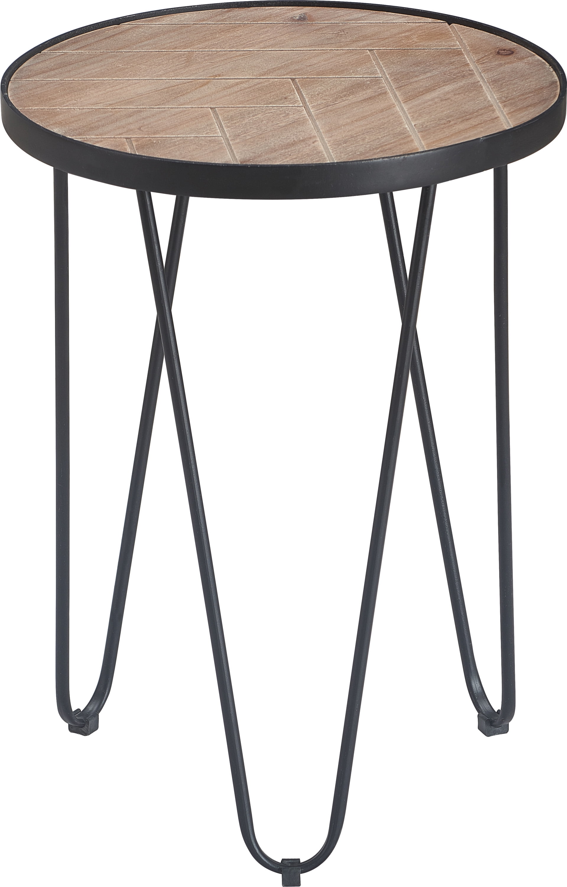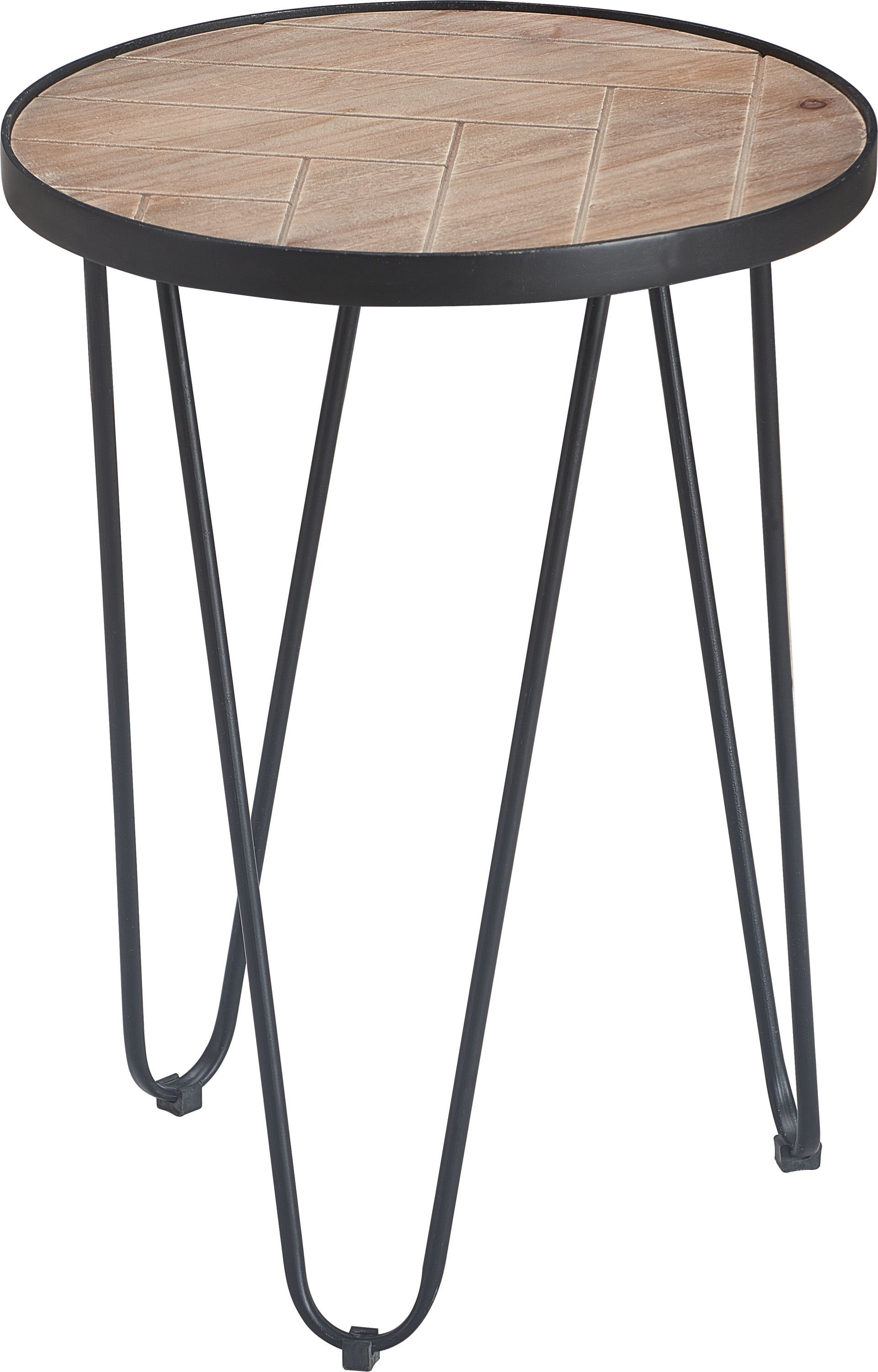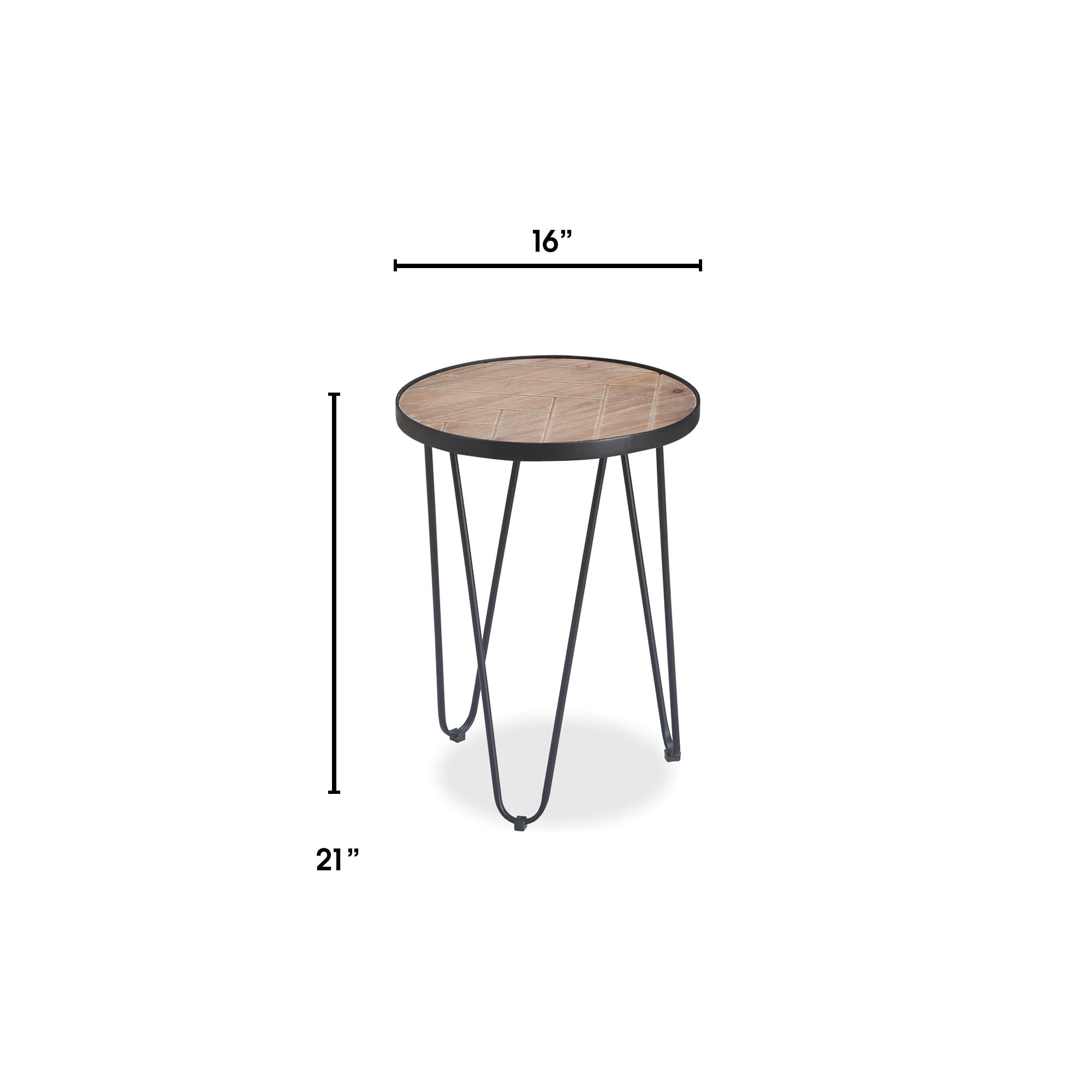 If you need more storage space in your small living room for items including a favorite book or a decorative room accessory, the ClickDecor Farmhouse Side Table will be an excellent choice. This table has a round table top made of rustic wood grain and black metal hairpin legs for sturdiness. The legs also add to the beautiful design of the table as the table top has a chevron herringbone pattern that is similar to the shape of the legs. This table is designed in a modern farmhouse style and can be successfully incorporated into many room themes including casual, contemporary, traditional and modern. Bring home classic American charisma with the Farmhouse living room set from ClickDecor. Due to natural materials, color variation and unique wood details are to be expected and celebrated. Features: Perfect for small spaces as a result of its minimalist design Rustic wood and metal coffee table brings vintage Americana style to your home Hairpin legs add modern farmhouse charm and longevity Complete living room set includes coffee table, side table and bookshelf (sold separately) Easy assembly required with included tools and hardware Weight Capacity: 80 lb Specifications: Product Weight: 6.6 Weight Capacity: 80 lb