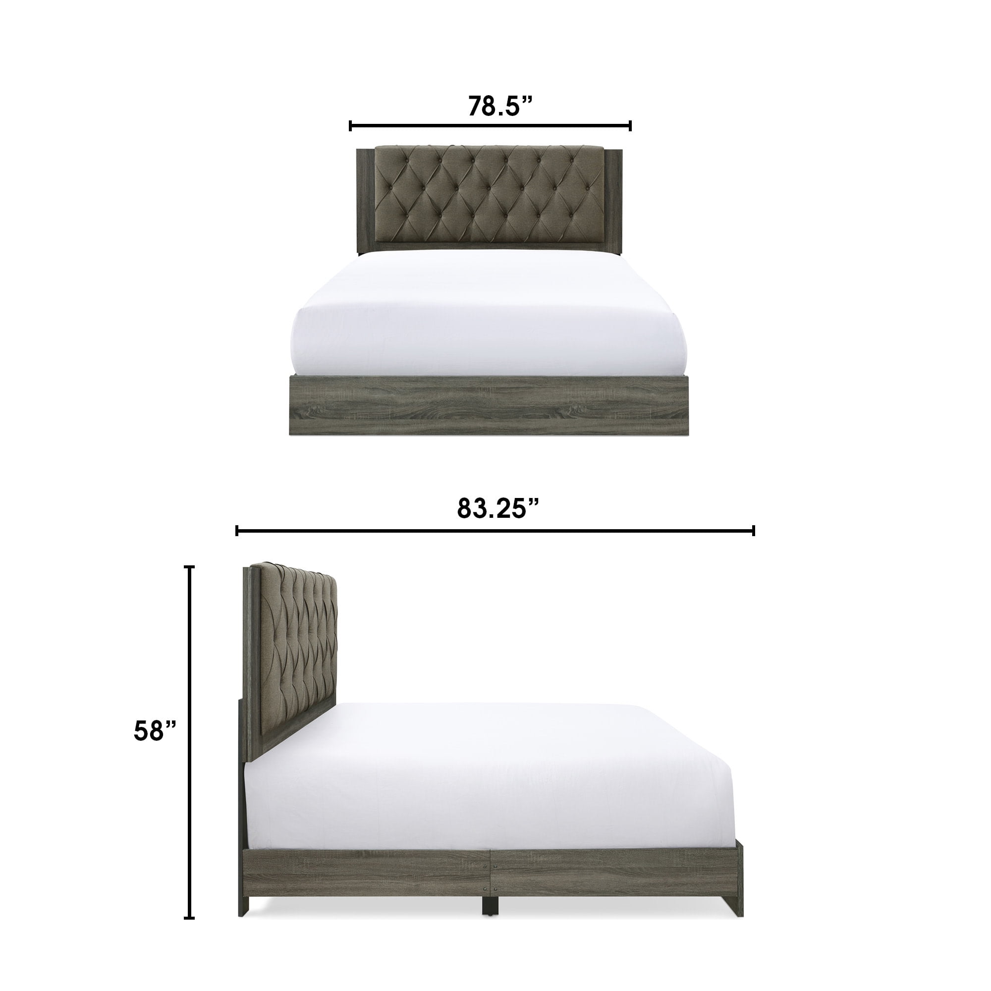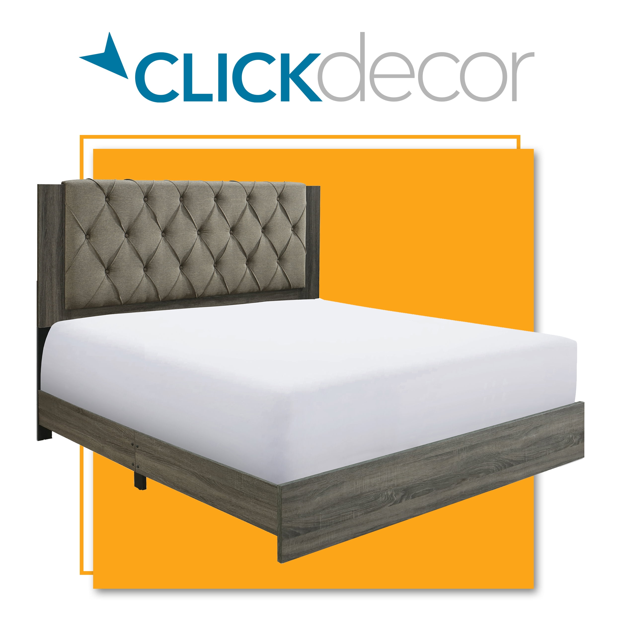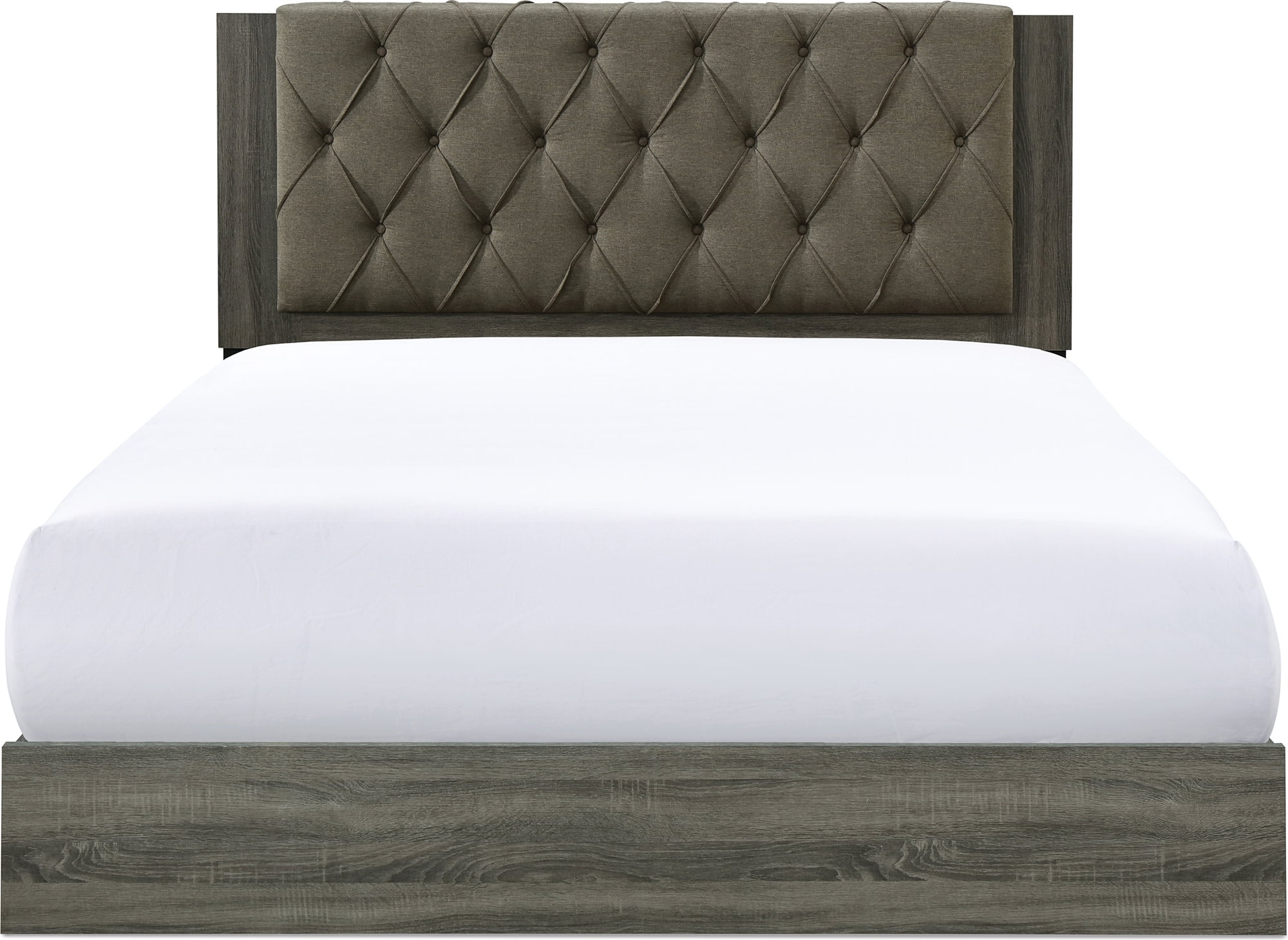 Add an eye catching centerpiece to your bedroom with this beautiful platform bed Featuring a tufted upholstered headboard that adds nice height and comfort Wood frame in a neutral shade that complements the headboard Available in queen and king sizes Easy assembly required with included tools