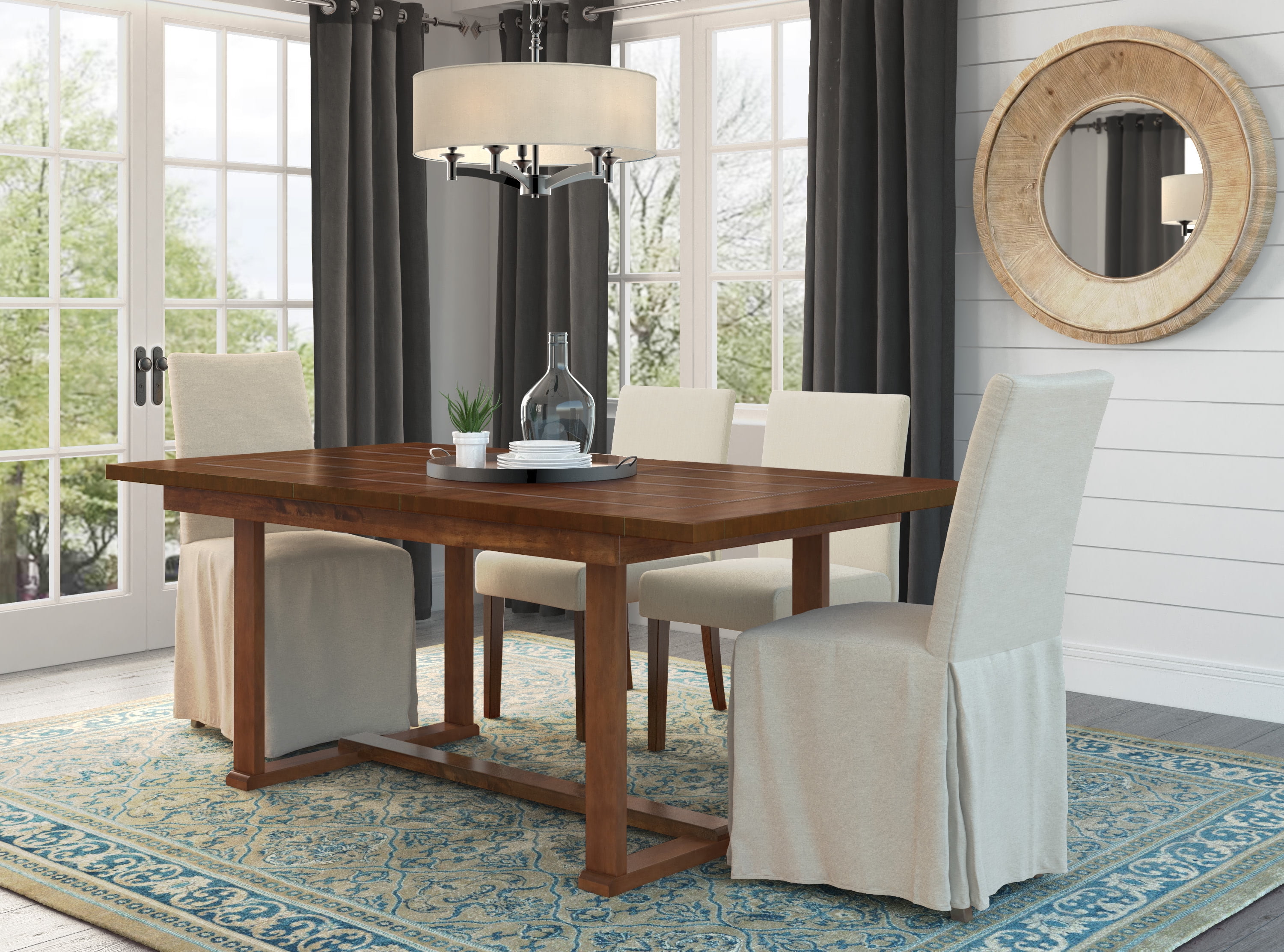 Extendable dining table brings ample seating and eating space to your dining room Add extra place settings in seconds with the clever built-in butterfly leaf extension Features a classic design with clean lines and handsome dark brown wood finish Perfect for small spaces and unexpected guests, table seats six to eight people Easy assembly required with included tools
