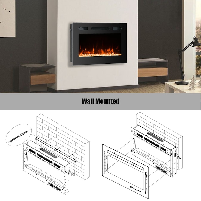 - This model of electric fireplace can be recessed in the wall or be wall-mounted,it is designed for home heating and functional decoration in your house