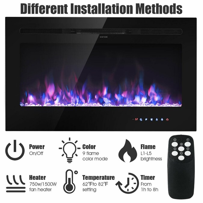 Combined with beauty and practicality, this 36-inch electric fireplace is not only a heater, but it’s also perfect home decor. And there are two install ways, wall-mounted or insert, and both are space-saving and simple to install. More, this electric fireplace heater simulates real flame with 9 flamer colors to create a cozy atmosphere as well as a traditional fireplace. While with five flame brightness settings ranging from a dim glow to full glow, allowing you to adjust the flame to the brightness you want. Also, allow the touch screen and remote control for easier use.