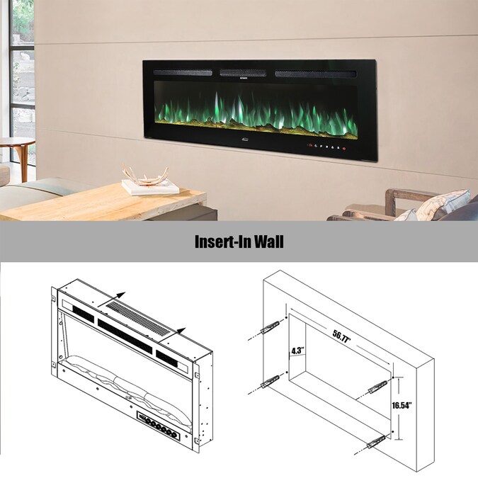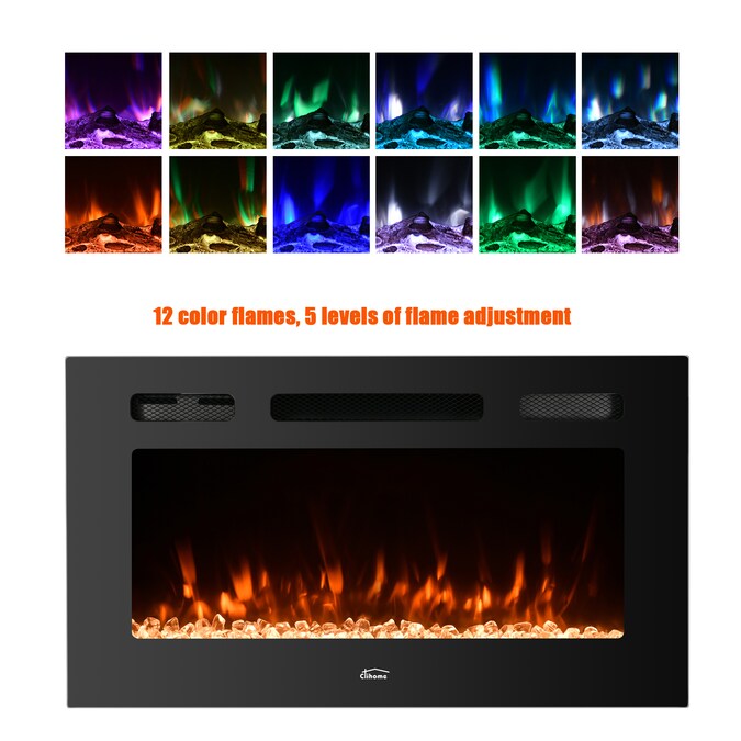 This recessed fireplace comes with logs and crystals that resemble burning coals, creating an authentic feel & look of a traditional fireplace. add comfort and cozy to your living room layout or restful retreat with this electric fireplace, featuring an insert with adjustable flames that can heat up to 400 square feet. 12 flame colors available and 5 flame color intensities, you can change the flame color from dimmer to brighter, and it’s easy to set an optional 1-hour to 8-hour shut-off timer with the front panel. After heating, 750W & 1500W modes can be adjusted accordingly for both warm and energy saving purpose. This fireplace is ideal for a family room, bedroom, hotel lobby, or anywhere supplemental heat and ambiance are needed.