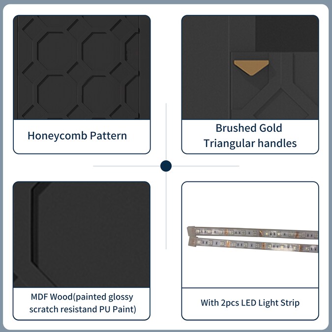 - The door panels of the storage TV cabinet are decorated with an embossed honeycomb effect, and the clean lines and simple design of the door cabinets are perfect for modern styles