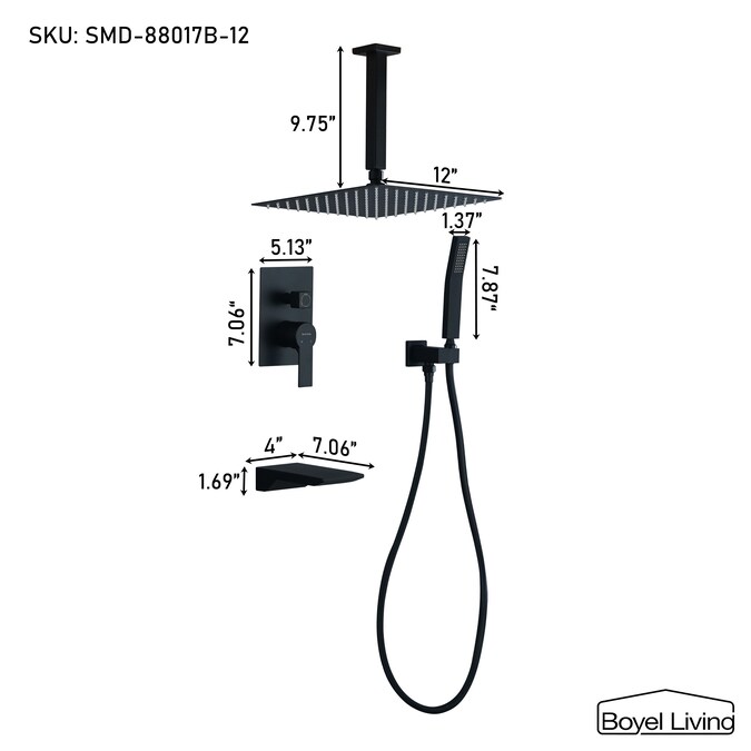 - Shower Head Diameter (Inches): 12