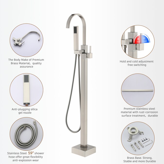 This freestanding bathtub shower has a simple yet elegant style with smooth lines, giving your bathroom a stylish, modern feel that suits any decorative bathroom style. The floor standing design will make the freestanding bathtub filler more stable. The design of pressure balance valve prevents overheating scalding or cold water shock caused by hot and cold water evacuation, giving you more comfortable and safe bathing time.er