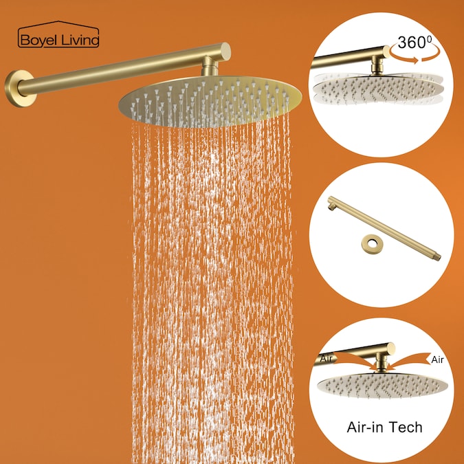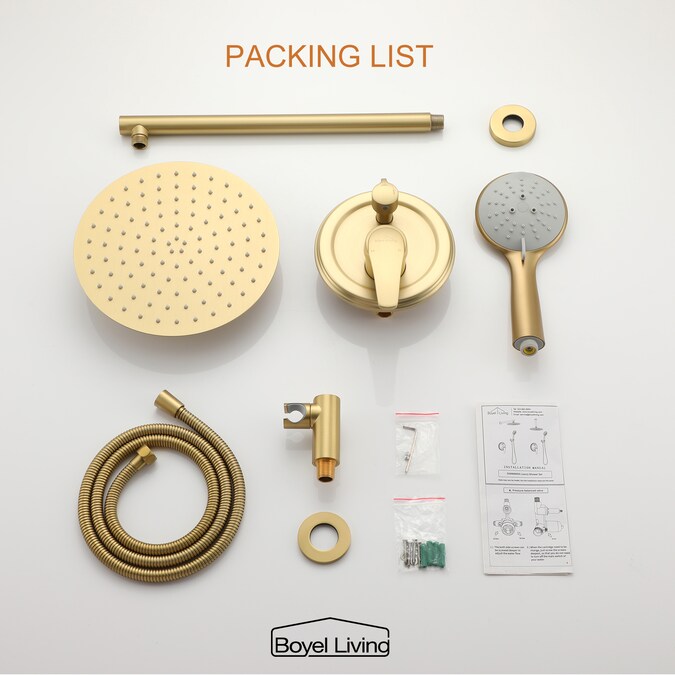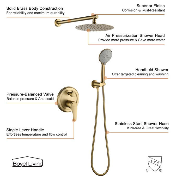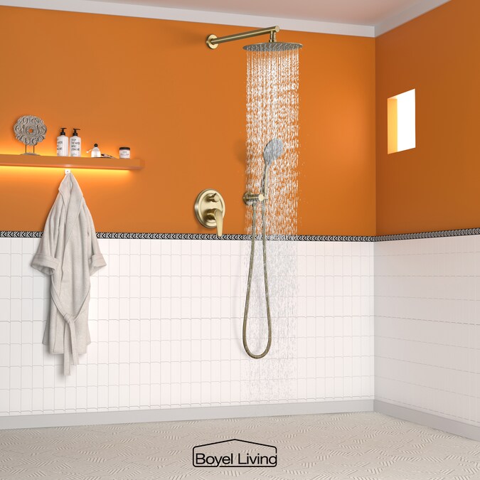 Clihome Brushed Gold 10-in Dual Head Built-In Shower Faucet System with 2-way Diverter (Pressure-balanced Valve Included)