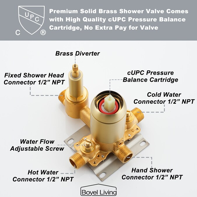 Advanced pressure balance ceramic disc cartridge with cUPC certification can effectively protect you and your family from scalding injury caused by sudden changes in hot or cold water pressure. When the cartridge need to be change, just screw the screws deepest to shut off water, so that you do not need to turn off the main water switch in your home. Injected air technology not only can save more water but also can offer consistent powerful rain shower even under low water pressure.