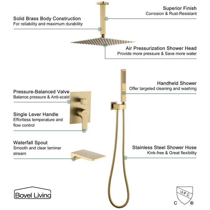 - 3-Function In 1 knob design: just simply switch the diverted knob to select 12 inches shower head, hand shower or tub spout to start your wonderful and relaxed shower