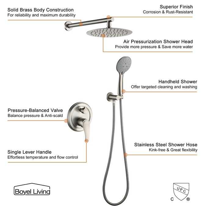 A modern and elegant shower head combo set to match the various decor of your bathroom. This shower headset is brass construction with a ceramic cartridge for maintenance-free use. With innovative air-jet technology, it simulates natural rain to provide you with a natural contact water experience. The pressure balancing valve chamber monitors the water pressure balance to protect you from being scalded by sudden changes in hot and cold water pressure. 5-Spray patterns can fully meet your different showering needs and it provides you with the most comfortable showering experience.