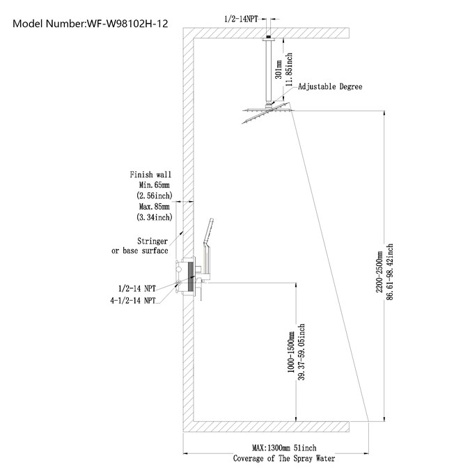- Shower Head Diameter (Inches): 12