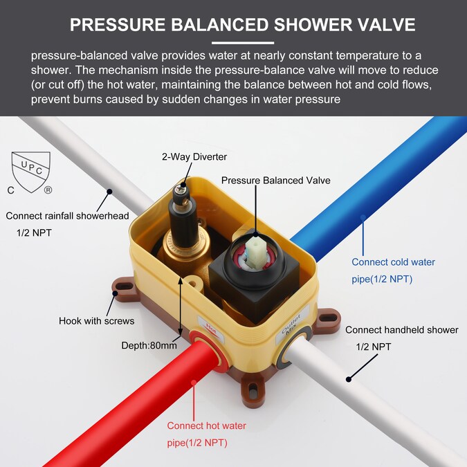 - CUPC certified valve, compatible with comfortable use and safety, balance the supply of hot and cold water, and prevent scalding