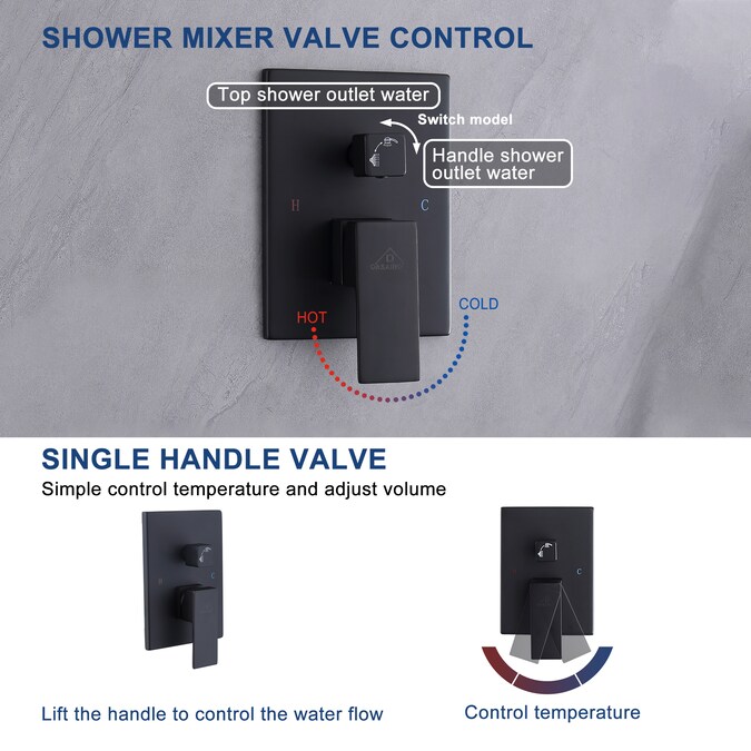 - This bathroom shower faucet set has two modes for bathing: tub spout and rainfall showerhead which could easily switch thanks the shower knob on the valve, while the lever handle could easily adjust the hot or cold wate