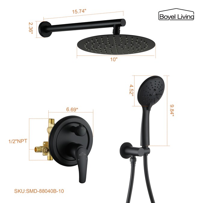 - The extra big 10 inch rainfall shower head can bring you spa feeling at home, the most amazing thing is that hand shower and rainfall showerhead can work at the same time which will meet you and your family’s needs to the greatest extent