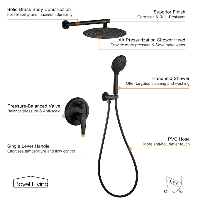 A modern and elegant shower head combo set to match the various decor of your bathroom. This shower headset is brass construction with a ceramic cartridge for maintenance-free use. With innovative air-jet technology, it simulates natural rain to provide you with a natural contact water experience. The pressure balancing valve chamber monitors the water pressure balance to protect you from being scalded by sudden changes in hot and cold water pressure. 5-Spray patterns can fully meet your different showering needs and it provides you with the most comfortable showering experience.