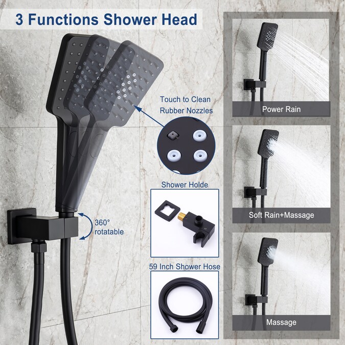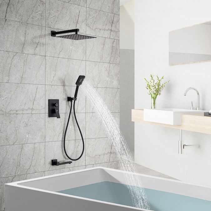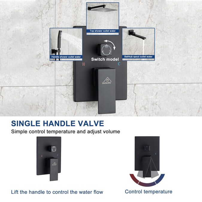 - The tub shower faucet set has 3 modes for bathing: handheld shower head, waterfall showerhead and tub spout, which could easily switch thanks the shower knob on the valve, while the lever handle could easily adjust the hot or cold water