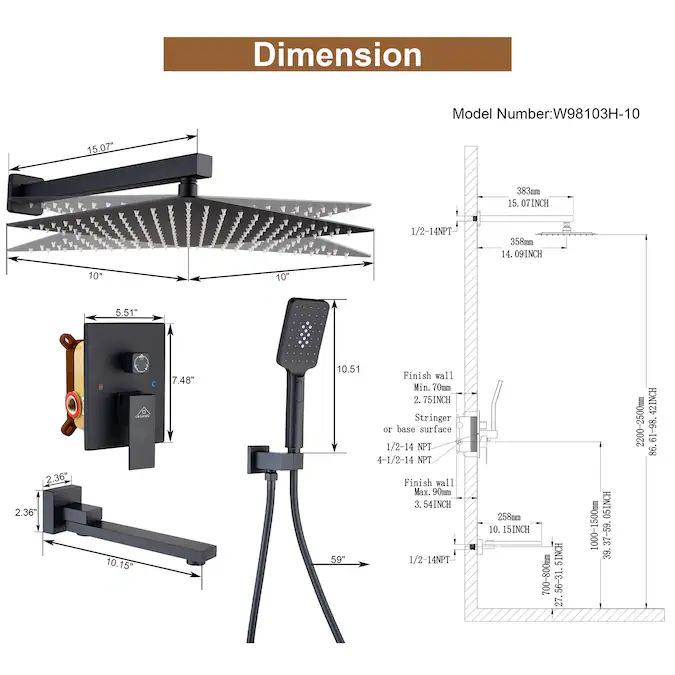 - The hand shower is connected to a 59-inch length of stainless steel hose, which can easily clean all parts of the body, or bathe children and pets