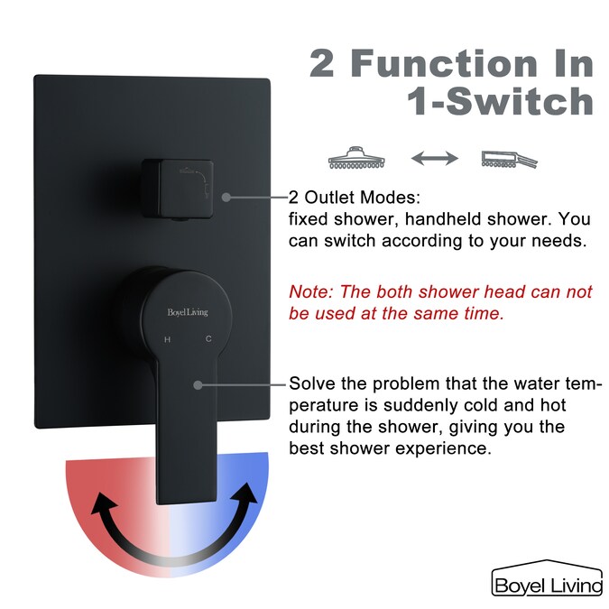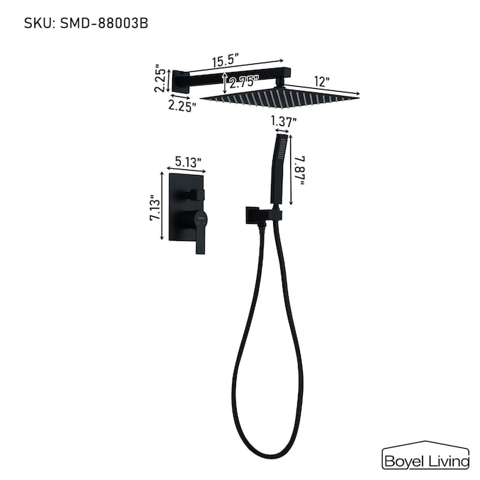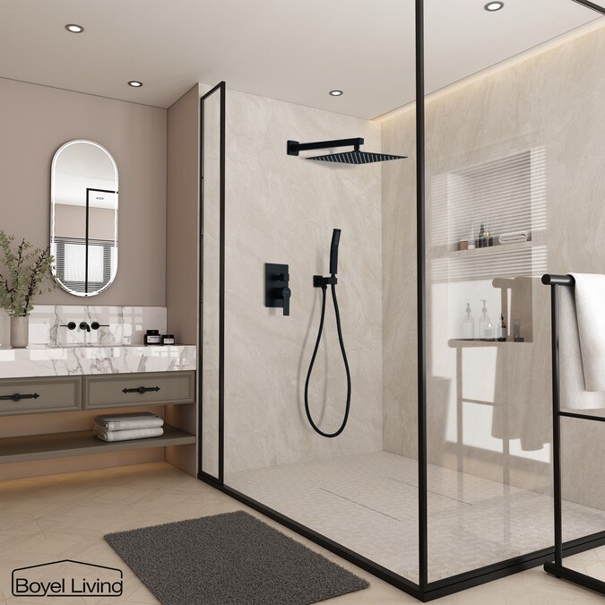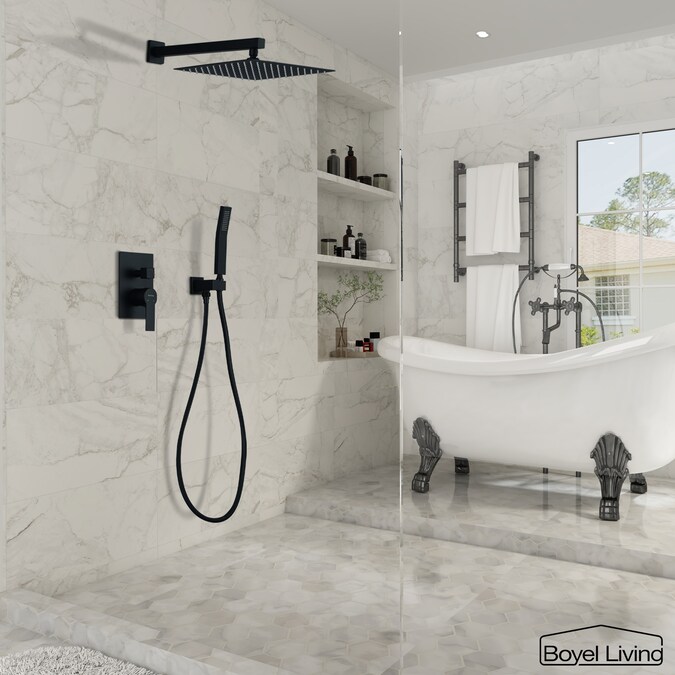 Clihome Matte Black 12-in Dual Head Built-In Shower Faucet System with 2-way Diverter (Pressure-balanced Valve Included)