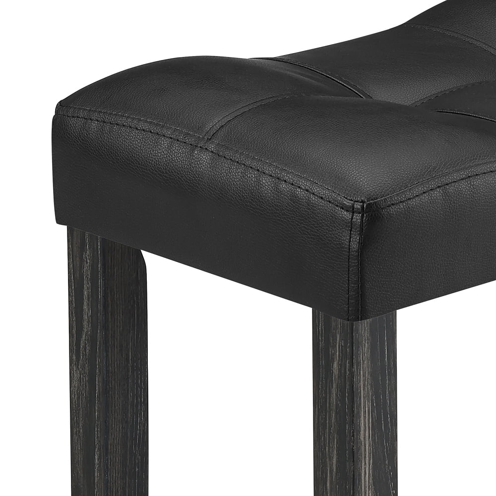 Clipeyh 5 Piece Industrial Solid Wood & MDF Dining Table Set, Black Exquisite appearance: Features a high-quality imitation wood grain surface, making it an excellent addition to your kitchen, gaming room, or living room Space-saving design: Four bar stools (18″ long x 11″ wide x 24.25″ high) fit perfectly under the table when not in use, maximizing space while maintaining aesthetics Stability and protection: Foot mats increase stability and prevent floor scratches Ergonomic stools: Equipped with PU leather and curved cushions for comfort, even during extended sitting periods Durable materials: Constructed from high-quality MDF, solid wood, and PVC veneers, offering scratch resistance and easy cleaning Easy assembly: All hardware and accessories are included, along with easy-to-follow instructions