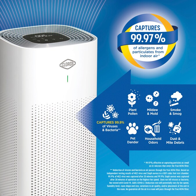 - Captures 99.97% of allergens and particulates* and 99.9% of viruses and bacteria**