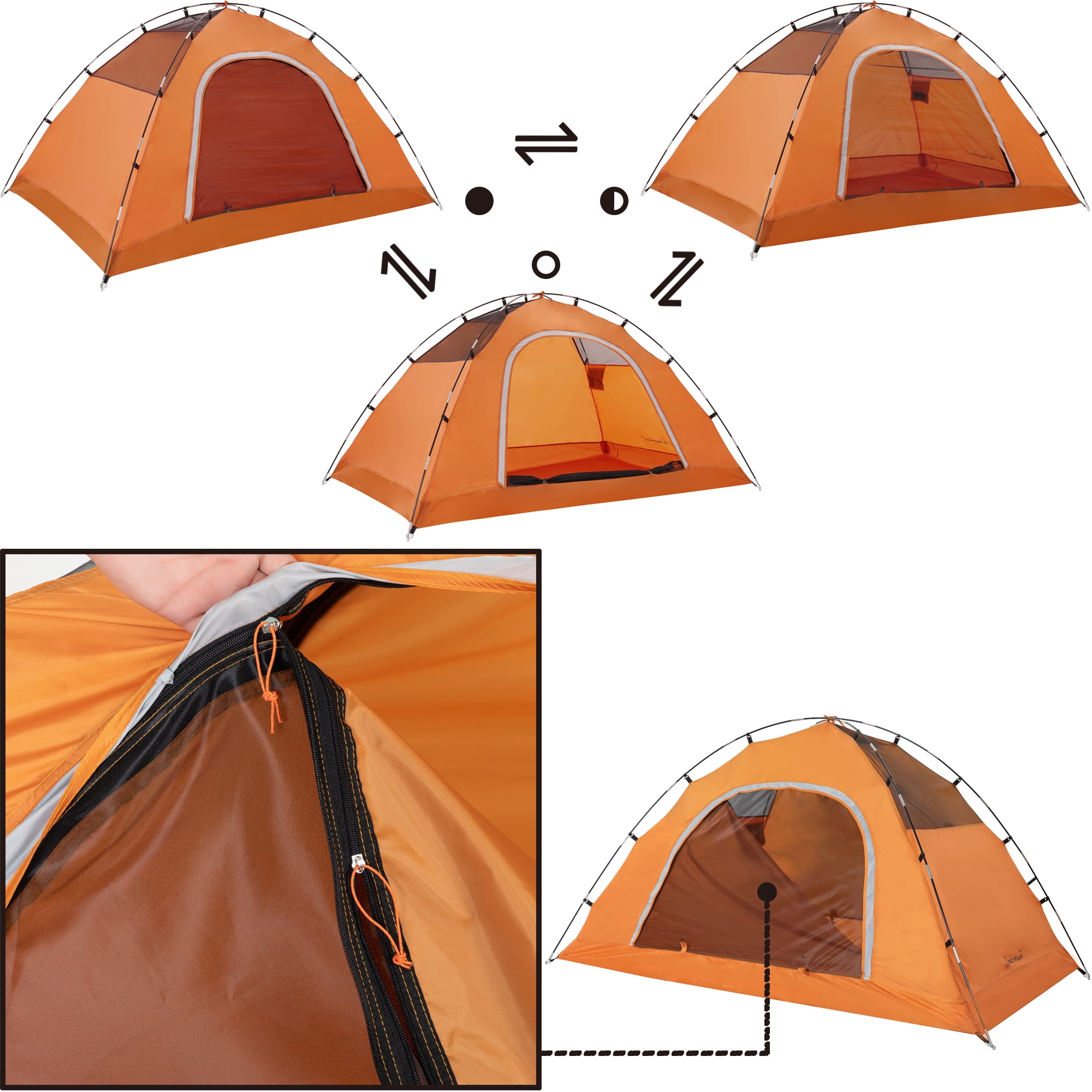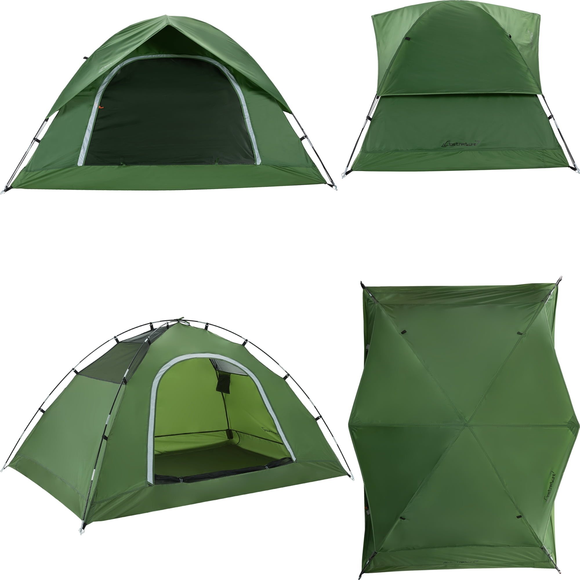 Clostnature 2-Person Dome Camping Tent with Rainfly Easy setup with an extremely simple 2person dome tent featuring a freestanding design for easy relocation without disassembly, allowing setup in less than 5 minutes by 12 people Waterproof construction made from polyester with PU 2000 coatings, designed to keep you dry and comfortable, featuring weatherproof material with factorysealed seams and duallayer fabric at the corners for enhanced security Excellent ventilation designed with Dshaped net and fabric doublelayer doors for improved airflow, while the mesh design on the top sides allows fresh air to circulate, reducing condensation and enhancing stargazing experiences Complete package includes an inner tent, rainfly, 2 inner tent poles, rainfly pole, 8 tent stakes, 4 ropes, and a carry sack for convenience and portability Durable and reliable design that is simpler and tougher than popup and automatic camp tents, making it an ideal choice for ultralight backpacking adventures