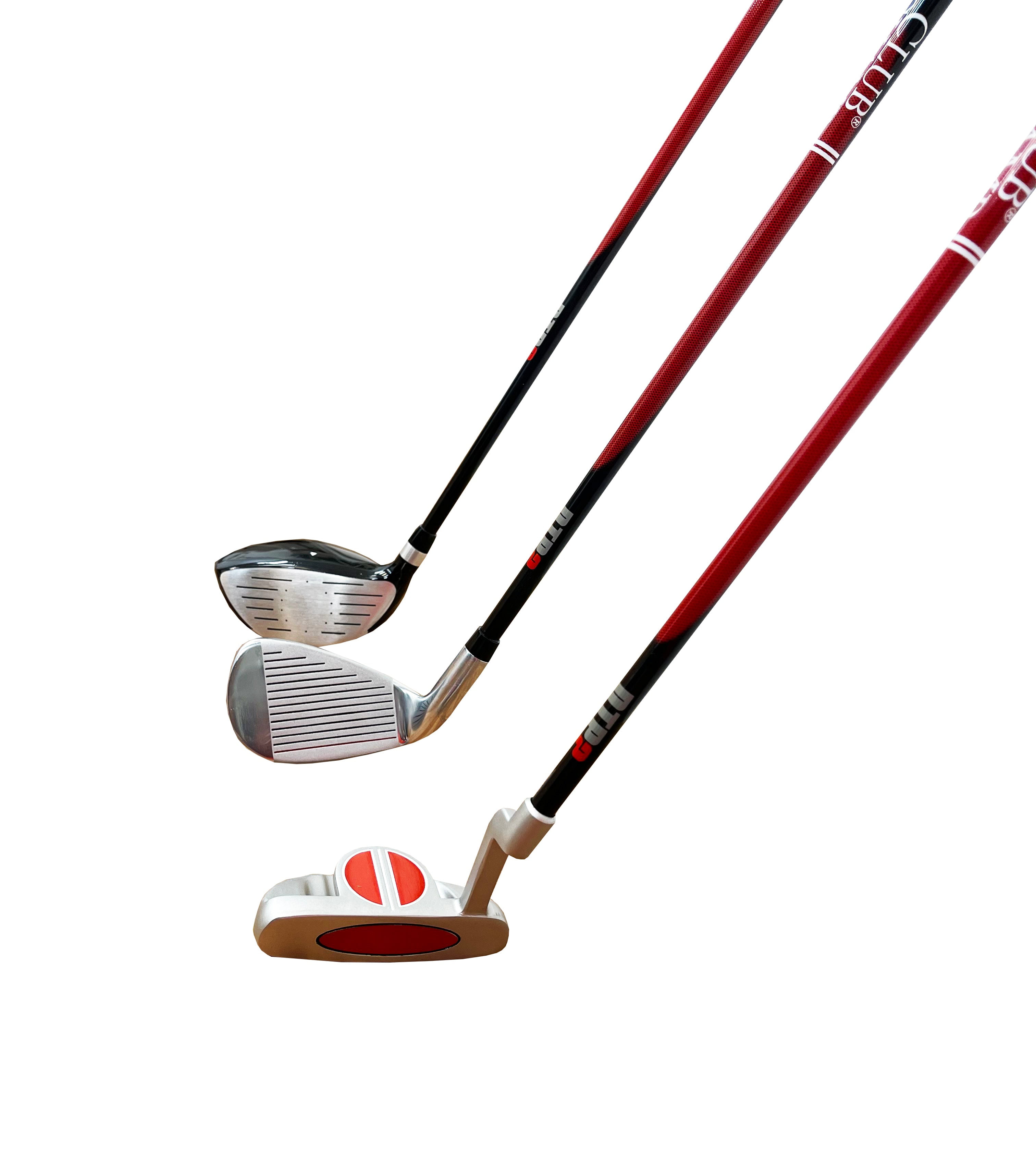 For Right-Handed Golfers Driver – High-Lofted, perimeter weighted club head with lightweight, composite shaft for longer, more accurate shots. Large sweet spot provides greater forgiveness and promotes straighter, longer drives off the tee 7 Iron – Offset, wide-sole design helps juniors square club for the perfect swing. Specially designed graphite shaft for junior golfers. Thin profile, non-slip rubber grip for maximum control. Putter – Soft face provides excellent speed control and pistol-style grip teaches proper hand placement. Multi-level alignment aid helps juniors master the perfect putting line. Headcover – Matching headcover protects driver face and hosel in the bag or during transport. Easy on/off stretch fit side panels keep headcover secure. Carry Bag – Lightweight carry bag with padded shoulder strap. Graphite friendly compartment top. Spacious storage pockets for all your gear and accessories