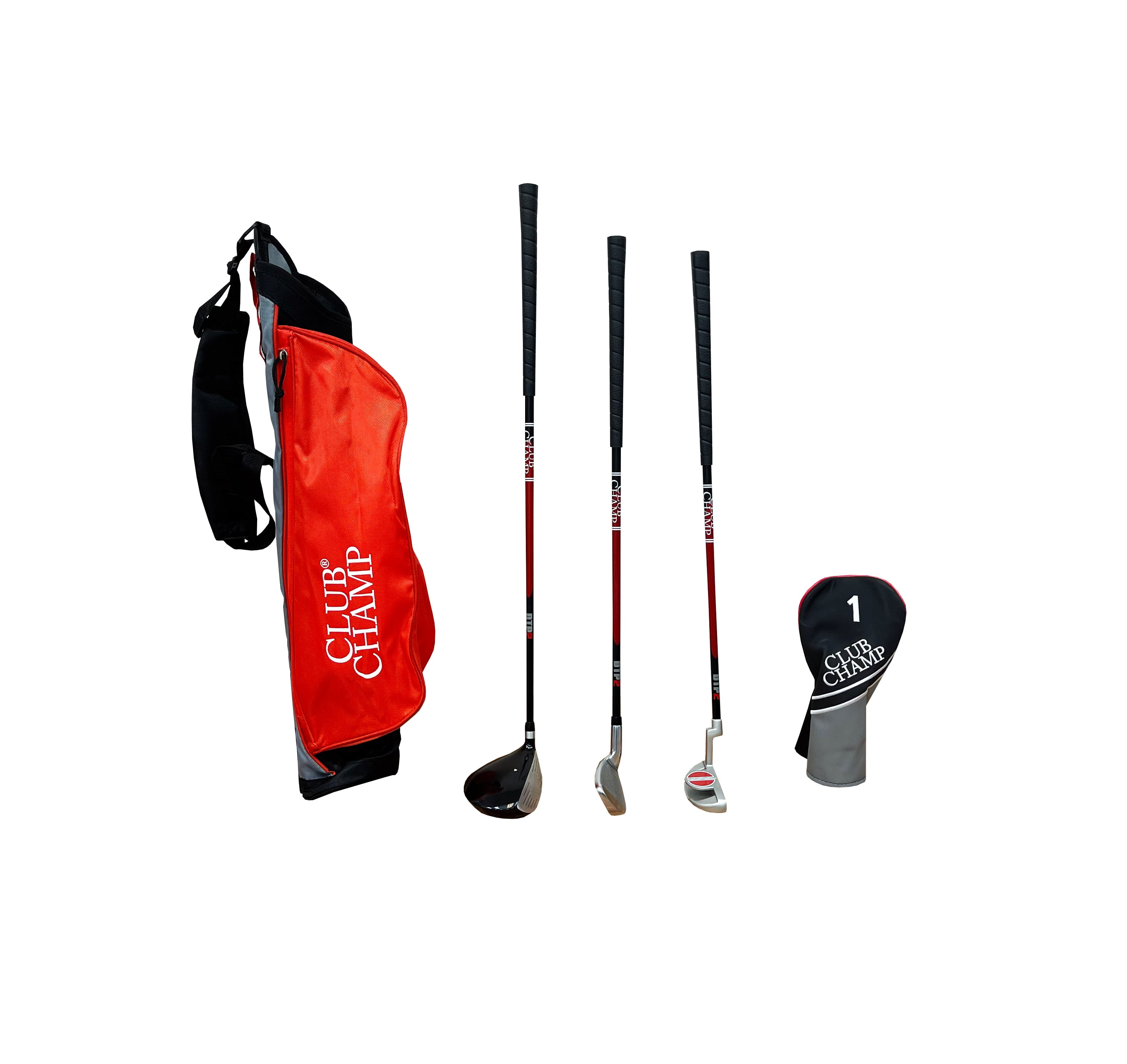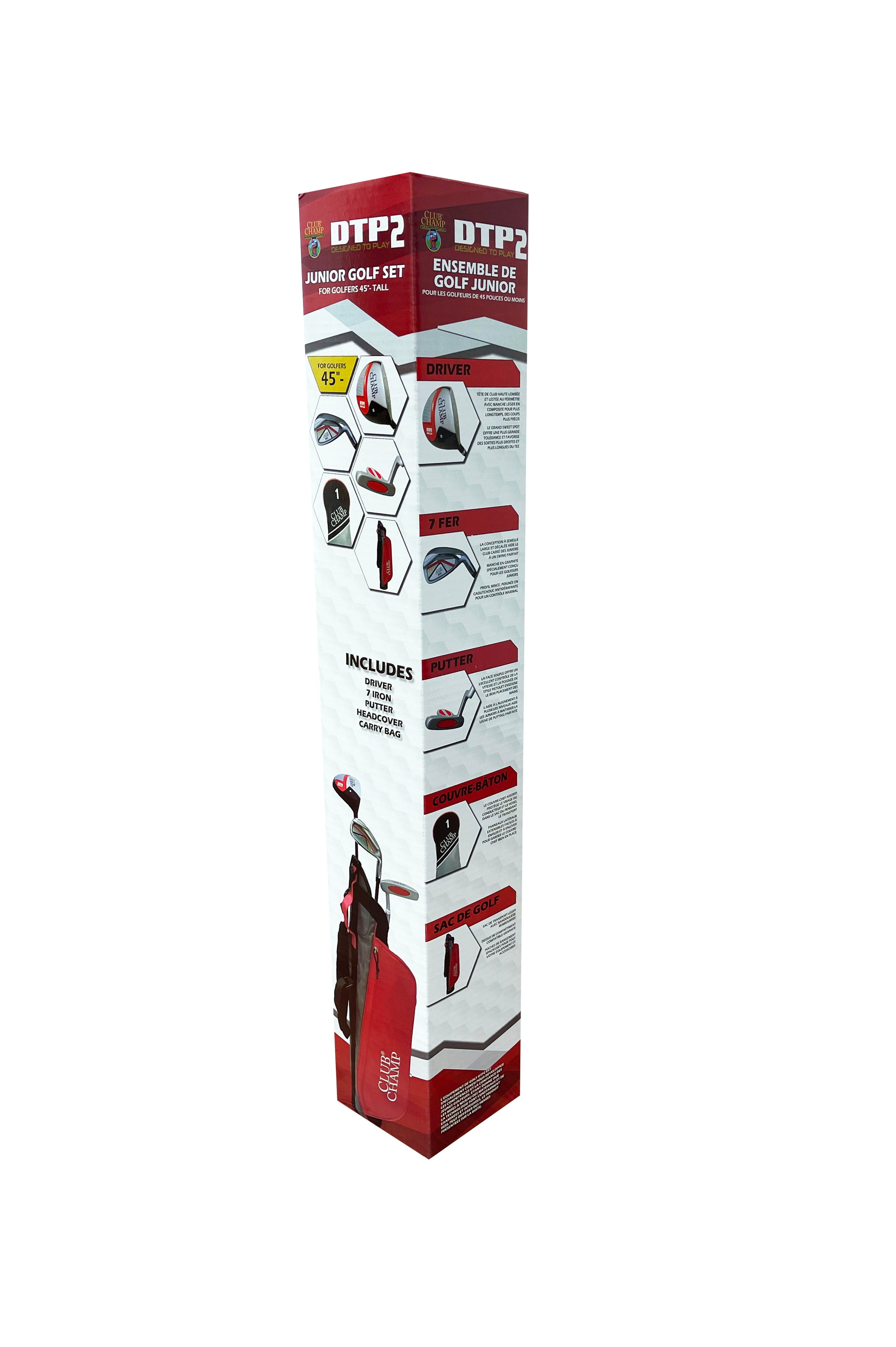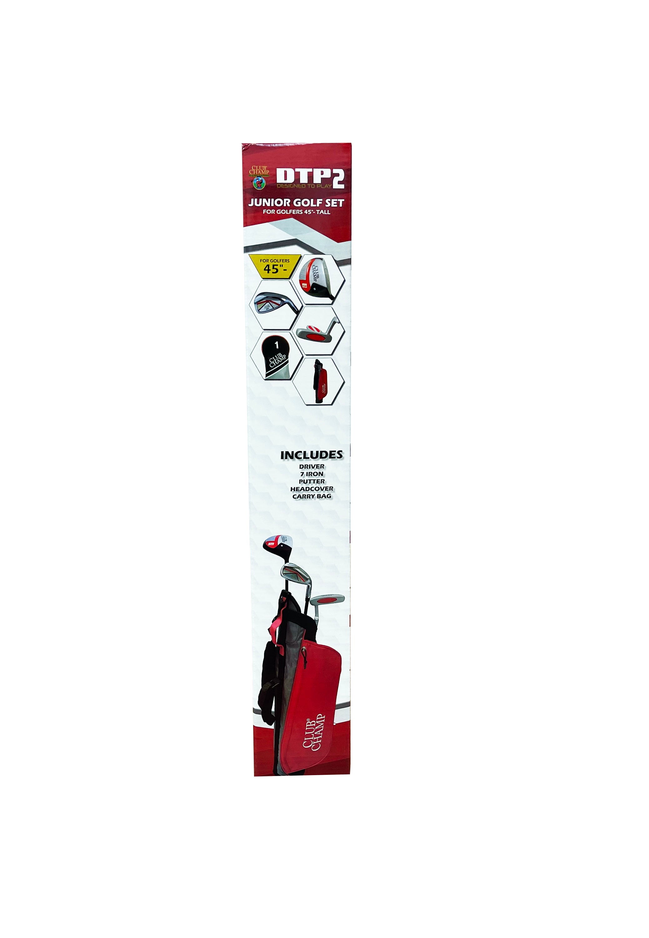 The Club Champ’s DTP Junior Golf Set is all your future golf pro needs to get started. This set designed for right-handed golfers include, Driver, Iron, Putter, Headcover and Carry Bag . Designed to Play gear is specially designed to build skills and confidence in younger golfers. This beginner set is the perfect golf set to help you child develop a love for the game of Golf!