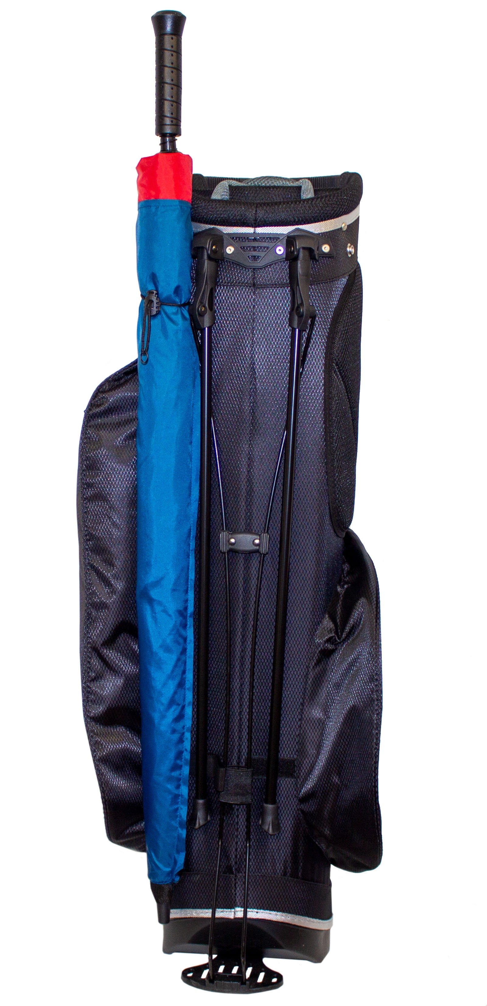 The Club Champ Golfer’s Stand Bag highlights plenty of storage for all your gear, is incredibly lightweight, and comfortable to walk 18 holes with. Weighing-in at a mere 4.5 lbs, this black bag has dual adjustable straps to distribute the weight evenly and maneuvering is a breeze with the comfort grip molded top and side handles. The 7-way padded top with four full-length dividers keep your clubs protected and organized while five storage pockets protect your valuables, keep your drinks cool, and make all your gear accessible. There’s even additional storage for your pen, divot tool and five tees without needing to go into pockets to access them. Expecting inclement weather This bag also comes with a zippered protective hood to keep your clubs dry and a catch and cinch umbrella holder.