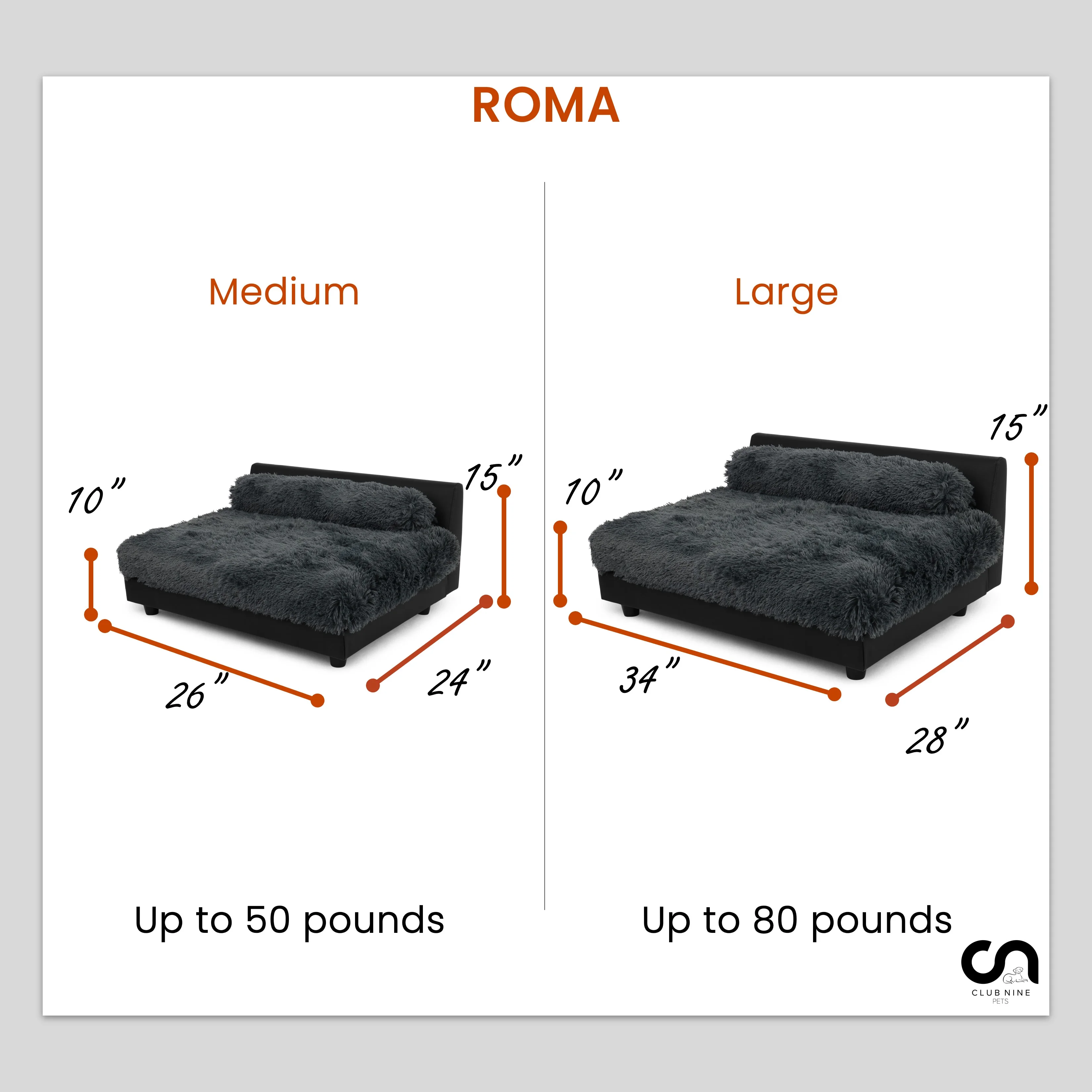 Club Nine Pets Roma Orthopedic Pet Bed for Dogs, Elevated, Large, Grey
