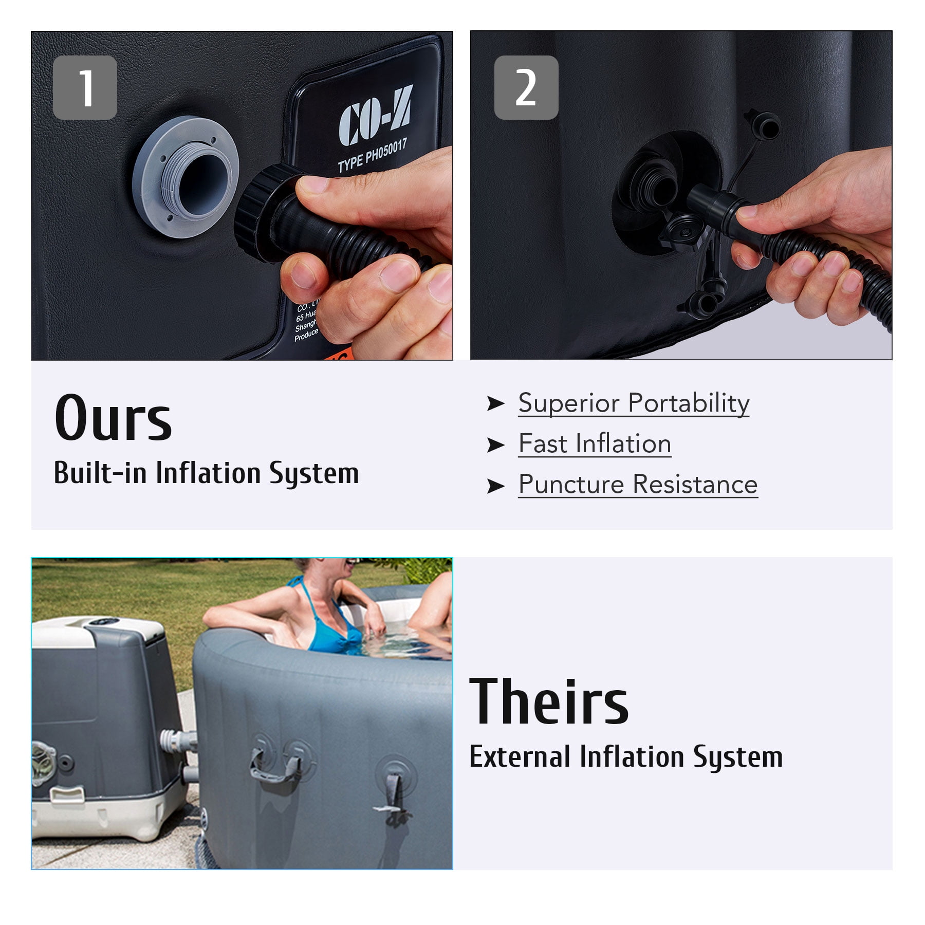 CO-Z 4 Person 6ft Inflatable Hot Tub Pool with Massage Jets and All Accessories Black