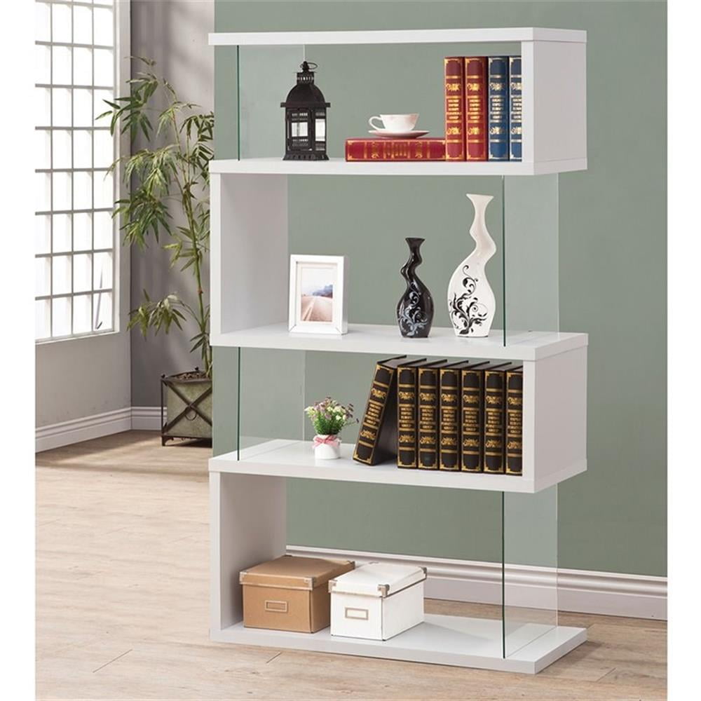 Coaster White Floating Bookcase: Open storage bookcase with a white finish Made from a combination of wood and glass Coaster bookcase with a modern design Dimensions: 15.5″D x 35.5″W x 63″H