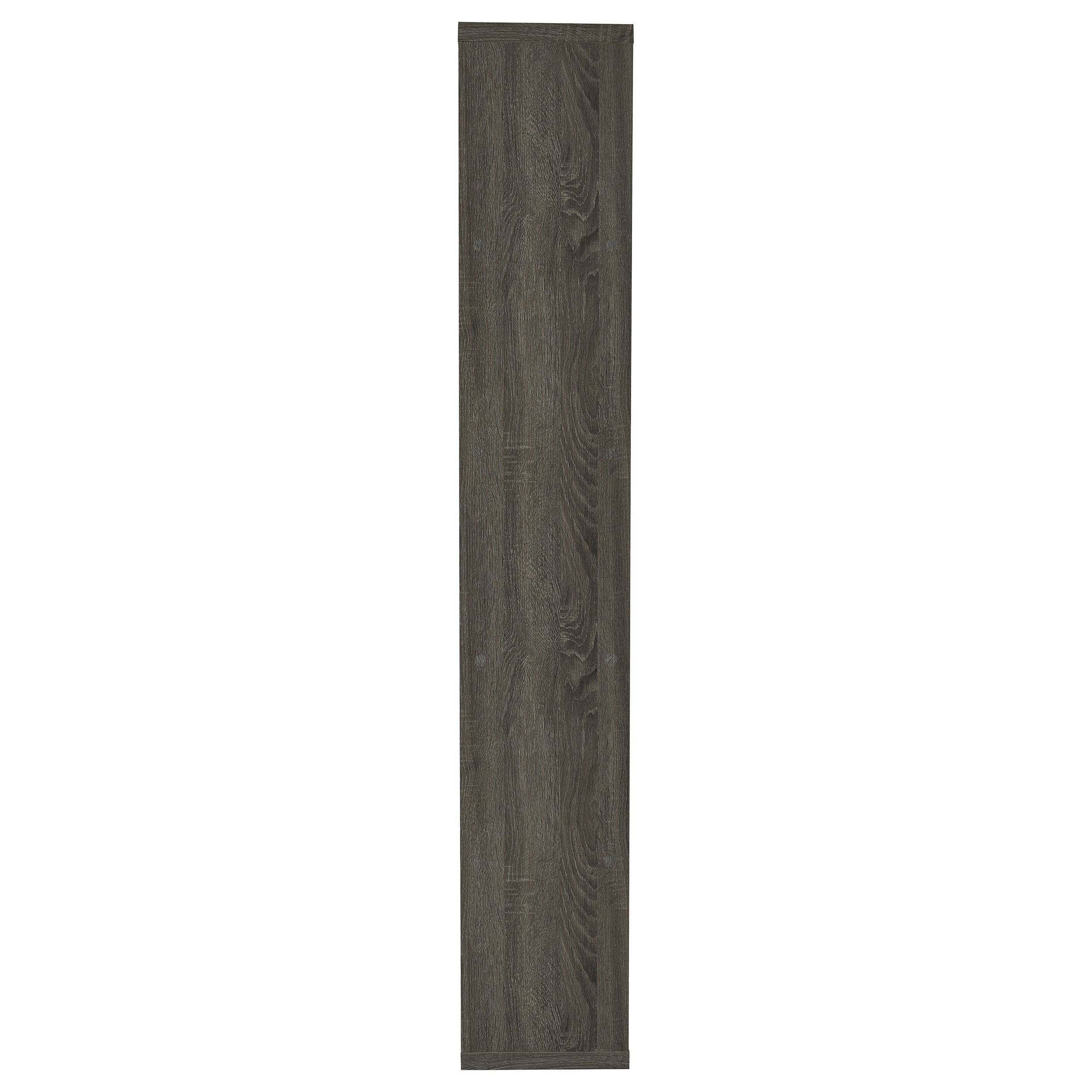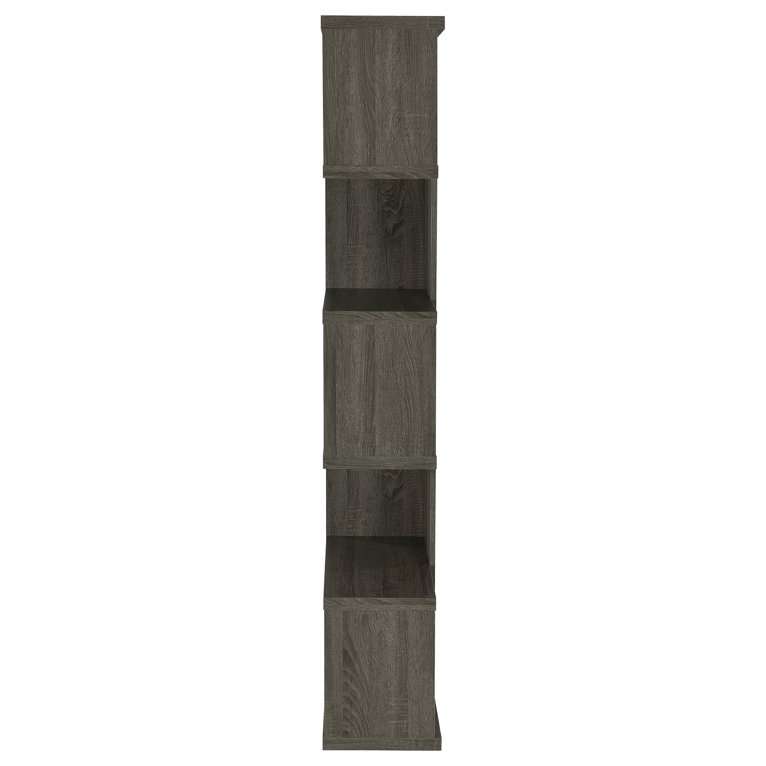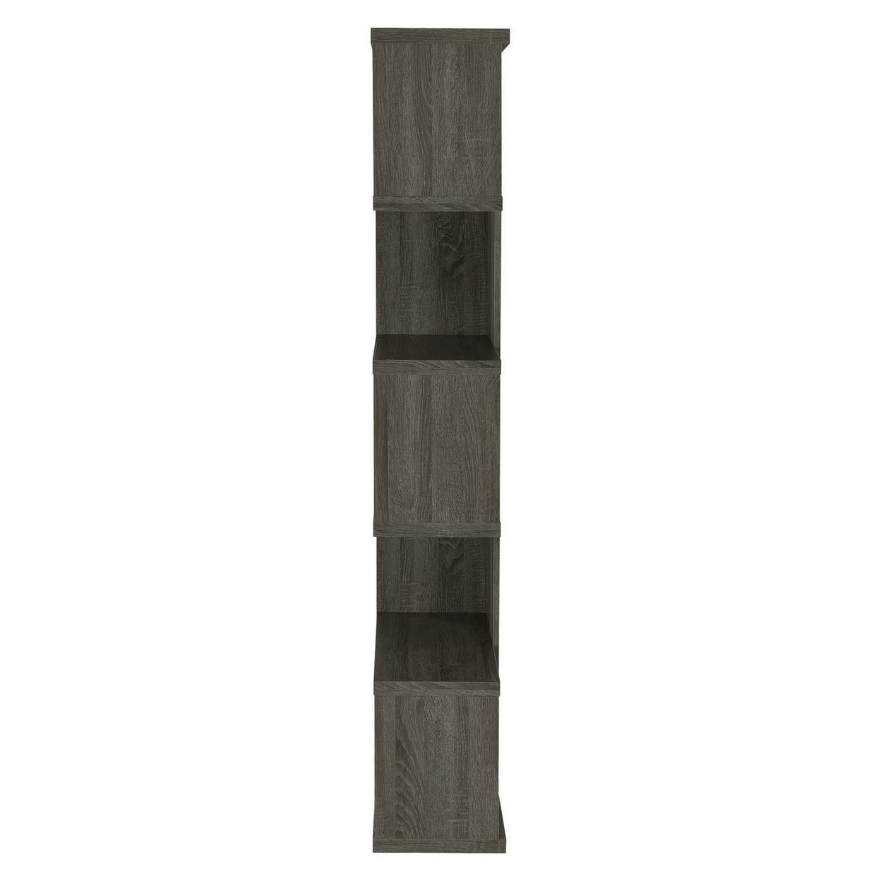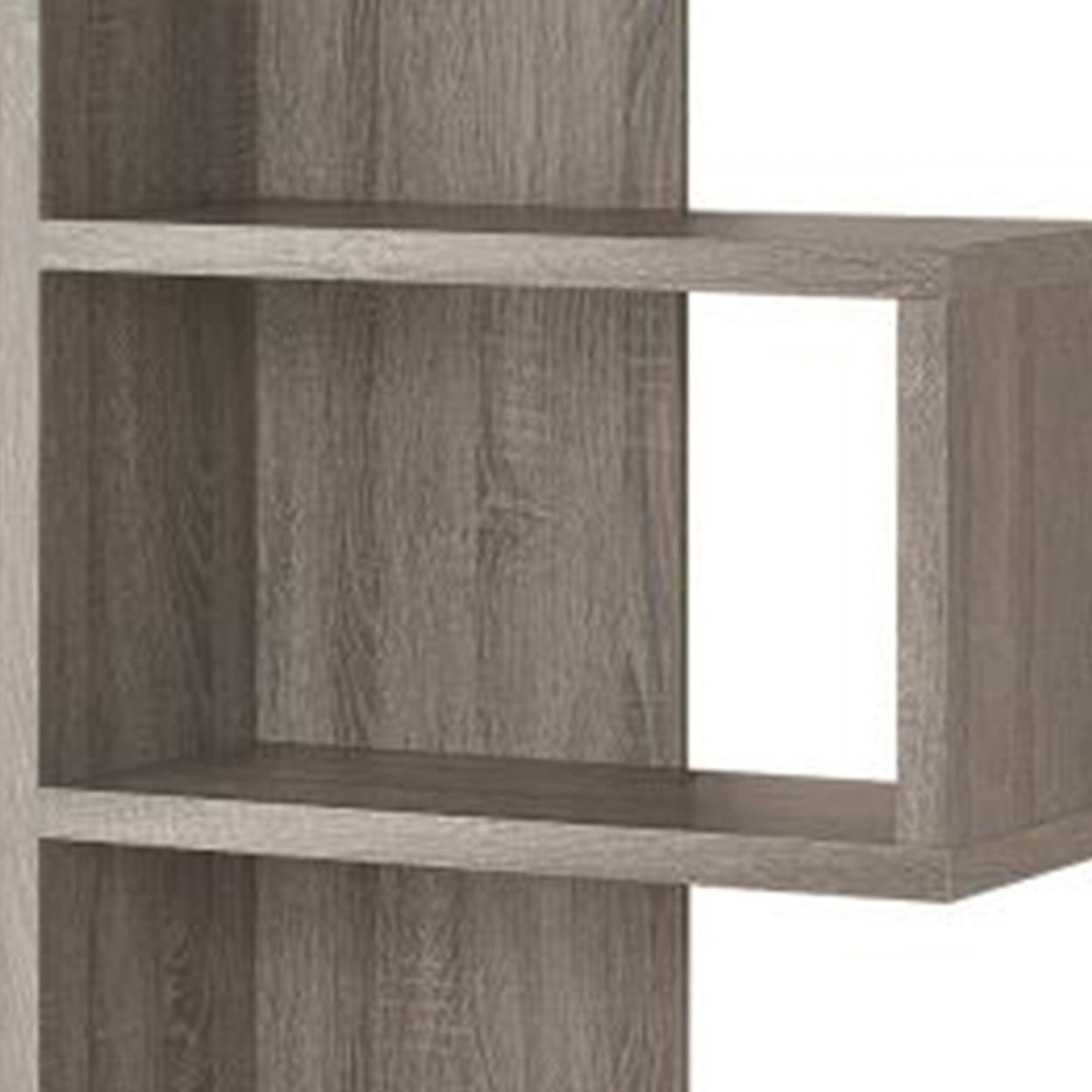 Purposeful imbalance tells a story. Designed with a whimsical profile, this bookcase brightens up a contemporary space. A visually pleasing arrangement of five tiers creates shelf space for books and decor. Finished in a cool weathered gray, it provides versatility and design power. Make this bookcase a focal point in a home office or casual room. Features: Includes: One (1) bookcase Finish: Weathered Gray Materials: Melamine Paper, Hollow Board, Particle Board, Wood Modern bookcase features sculptural combination of alternating boxes and open shelves for artistic appeal This bookcase can be flipped 180 degrees MDF, particle board, and laminate construction Specifications: Product Dimensions: 70.75″H x 24.75″W x 11.5″D Product Weight: 55 lbs Number of Shelves: 5 Shelf Weight Capacity: 22 lbs Assembly Required: Yes Warranty: One (1) year limited manufacturer warranty