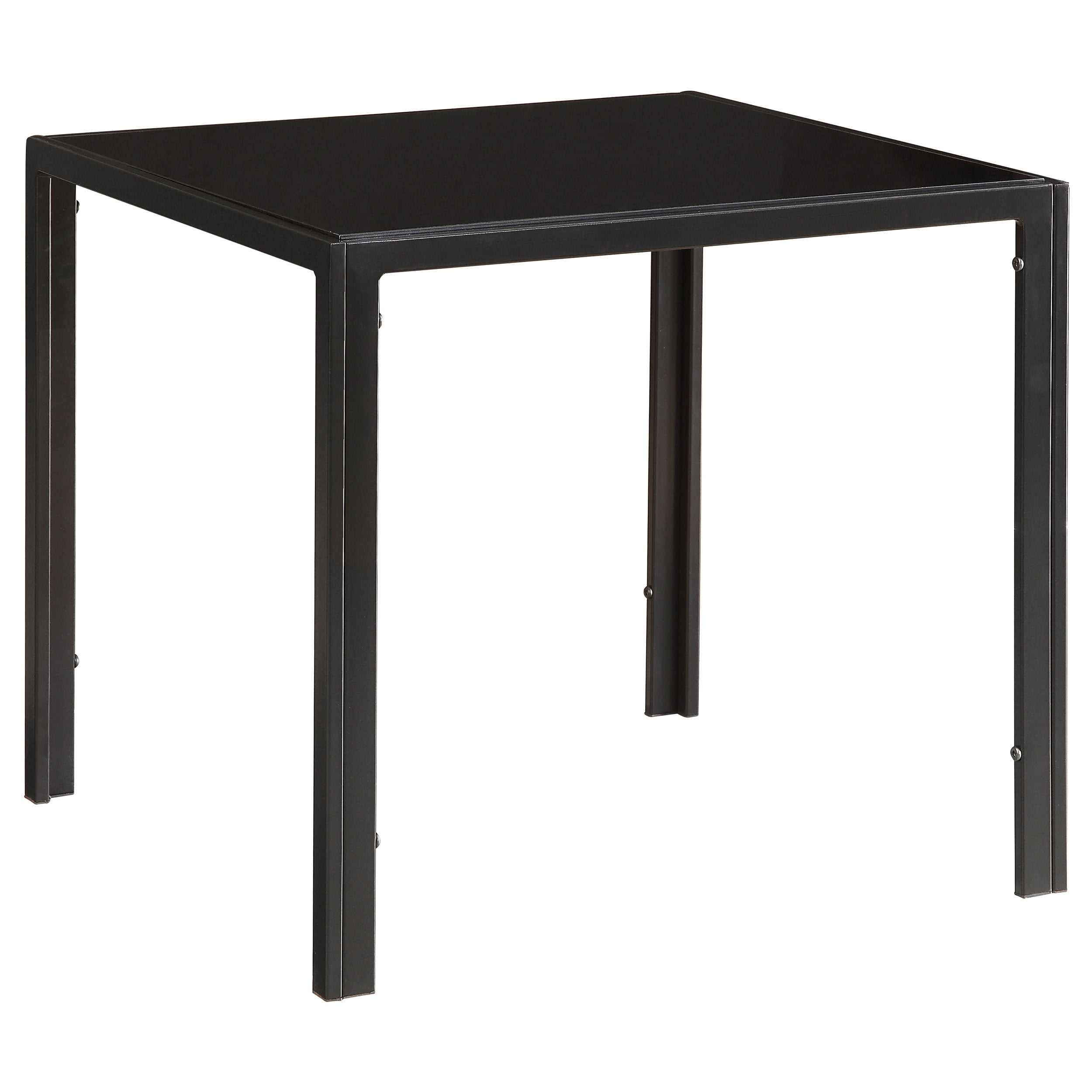 Includes: One (1) coffee table and two (2) end tables Finish: Black Materials: Glass, metal Three-piece set offers seamless, consistent design Marble-like table top with black finish legs Versatile transitional accent Leveler/plastic glide: Plastic glide