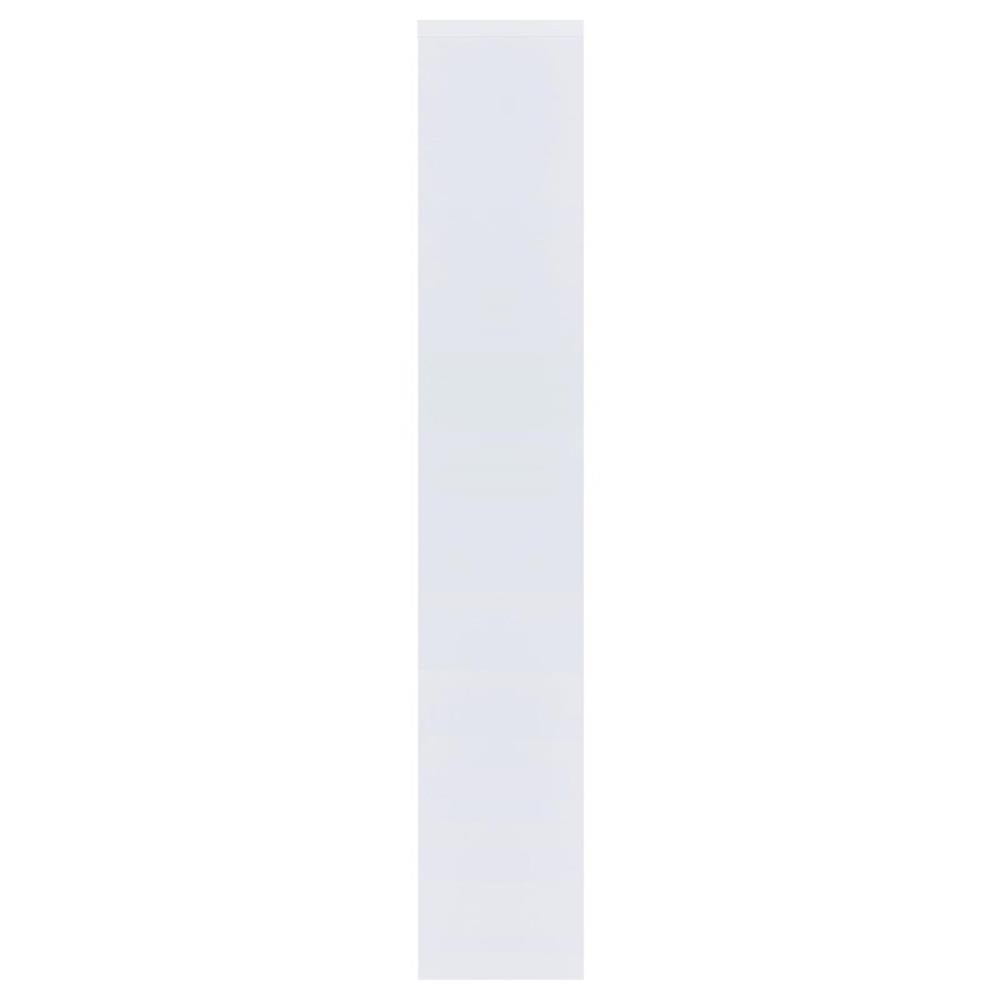 Coaster Interlocking White Bookcase: Eight Compartment Shelves Open Back Serves as Two-Way Display White finish Interlocking shelves Display space Different sizes of compartments Open storage bookcase dimensions: 35.00″W x 11.75″D x 70.50″H Assembly required